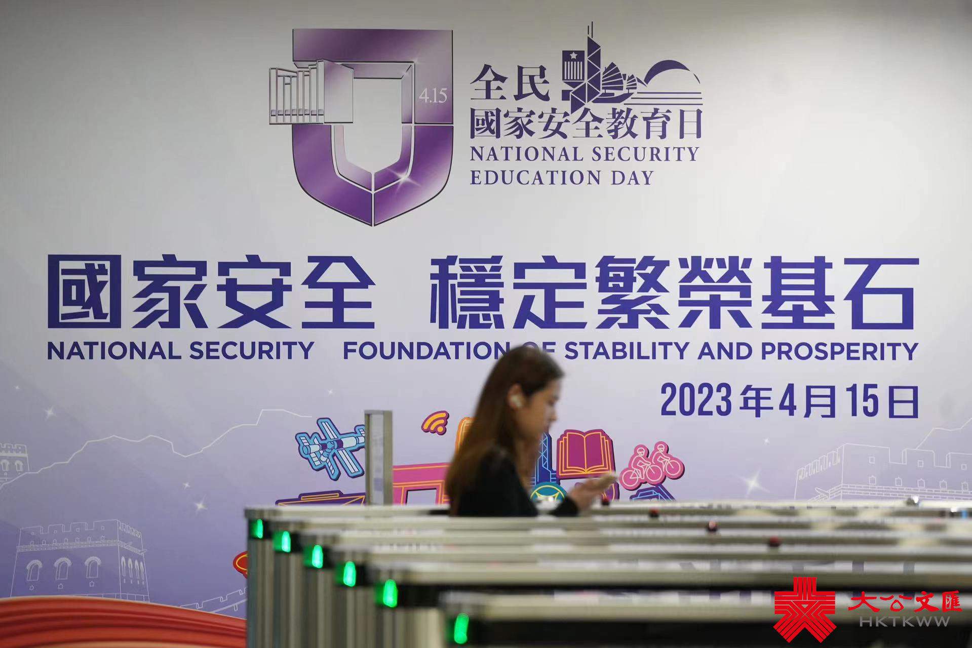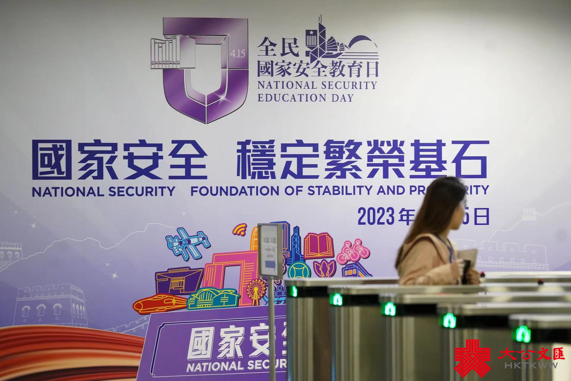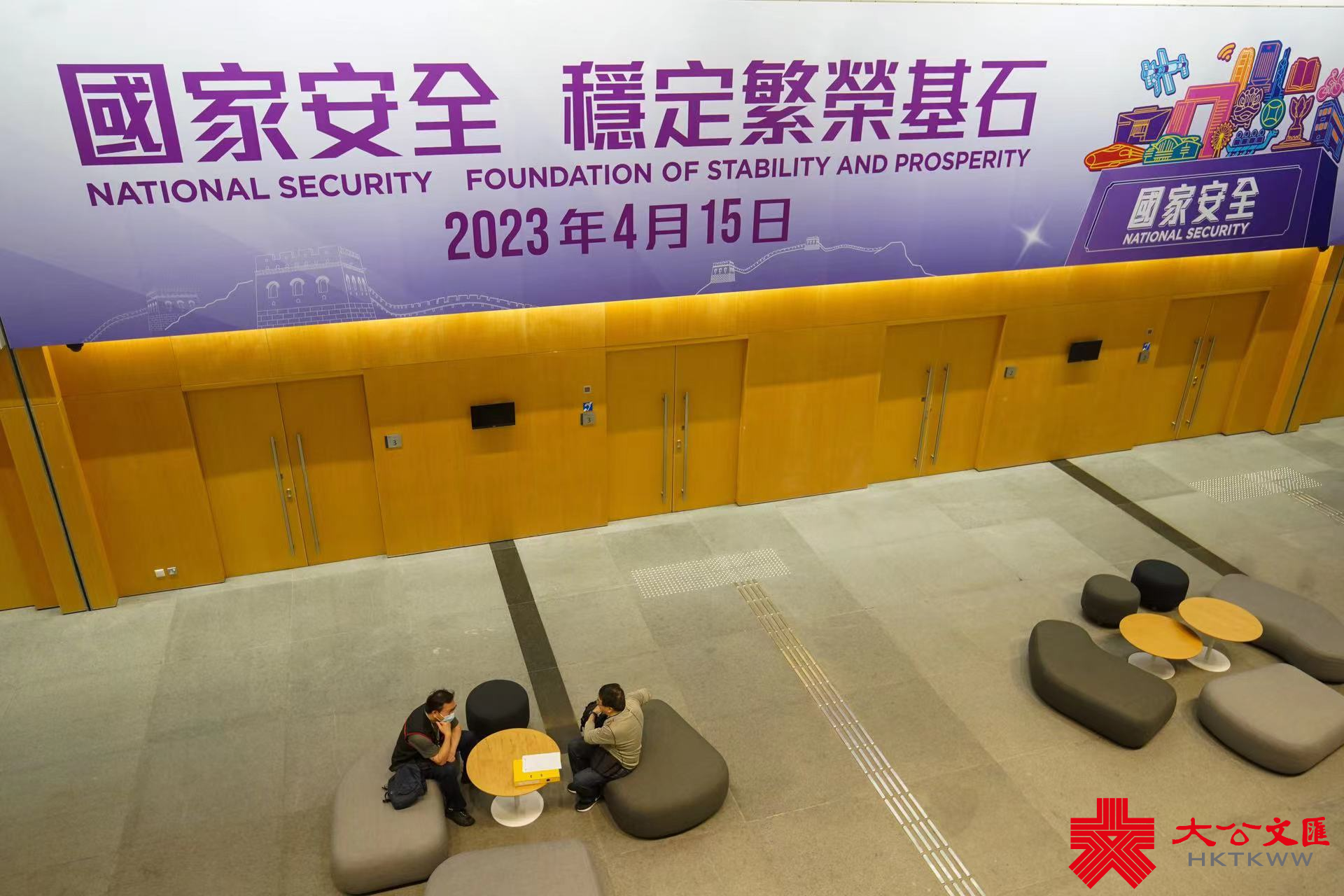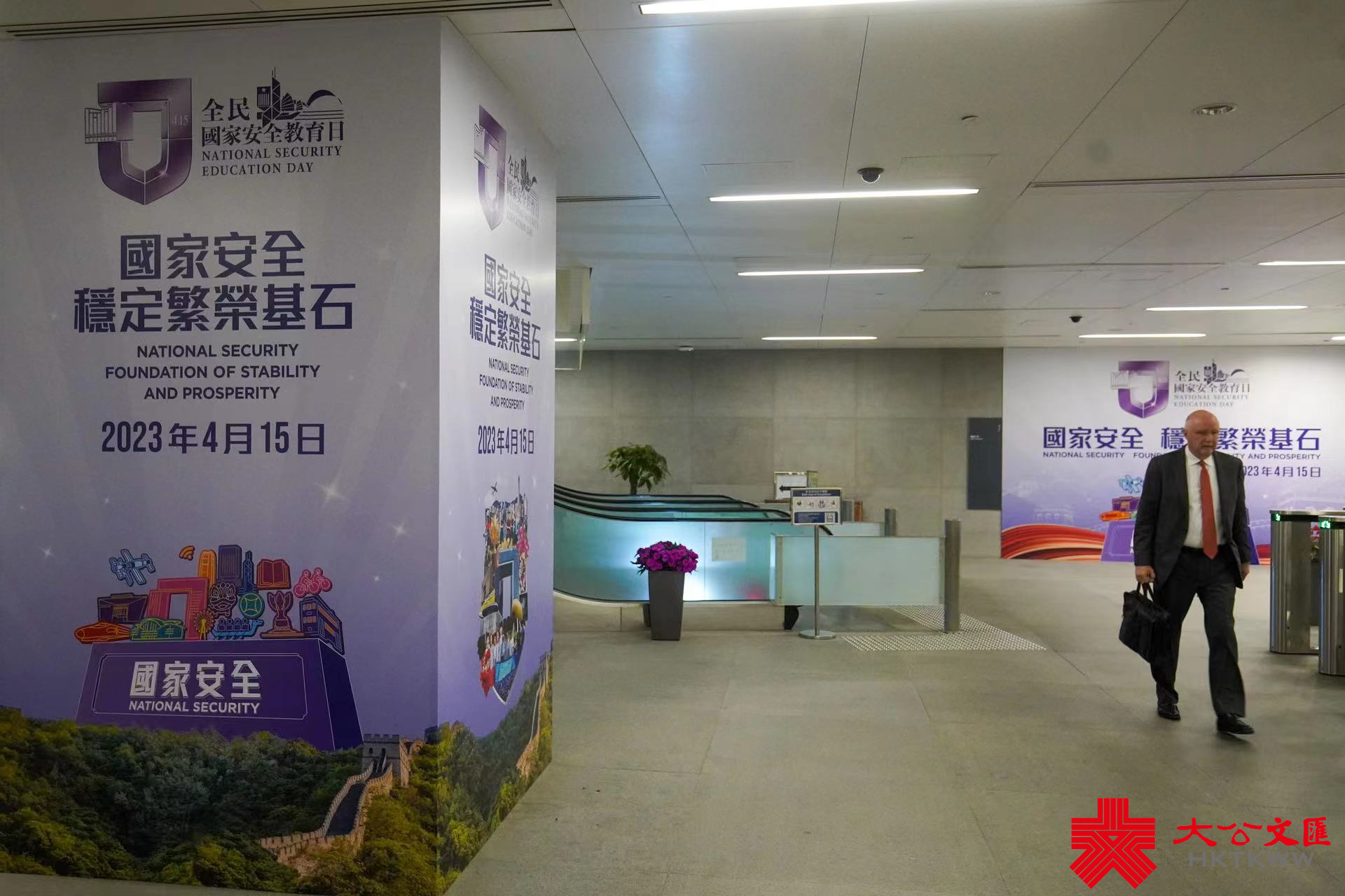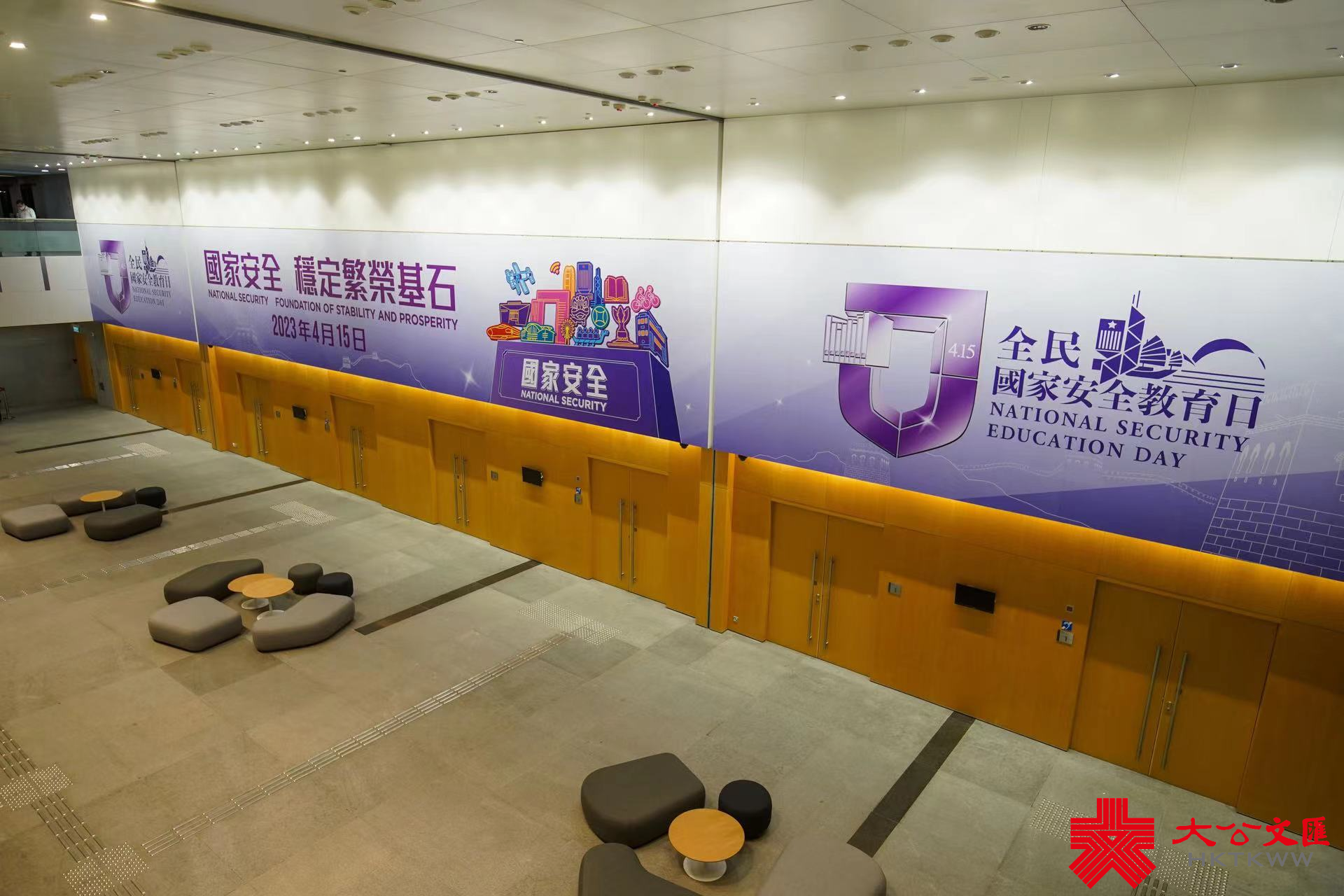 今年4月15日是第八個全民國家安全教育日。大公文匯全媒體記者今日(22日)發現,在政府總部東翼大堂、政府總部西翼入口等處,已貼出大型平面宣傳橫額,上面寫有「國家安全 穩定繁榮基石」、「全民國家安全教育日」等字樣。
