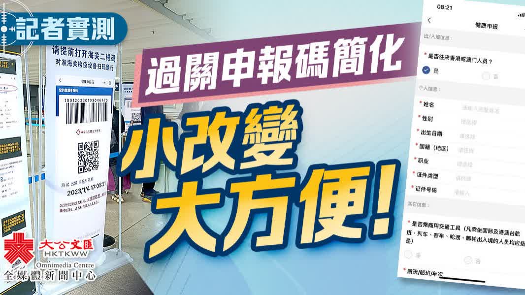 (大公文匯全媒體 記者 蘇婷)自香港與內地全面恢復往來後,過境旅客只需事先於網上申報並取得健康申報二維碼,便可自由出入境。不過,因過境客操作錯誤或忘記申報等原因,申報碼時常成為過關「攔路虎」,嚴重阻滯過關效率。記者今日(23日)在羅湖口岸發現,海關申報碼簡化了往來港澳人員選擇「出境」或「入境」的選項以及「旅居史」的填寫,不少跨境旅客大讚方便。
