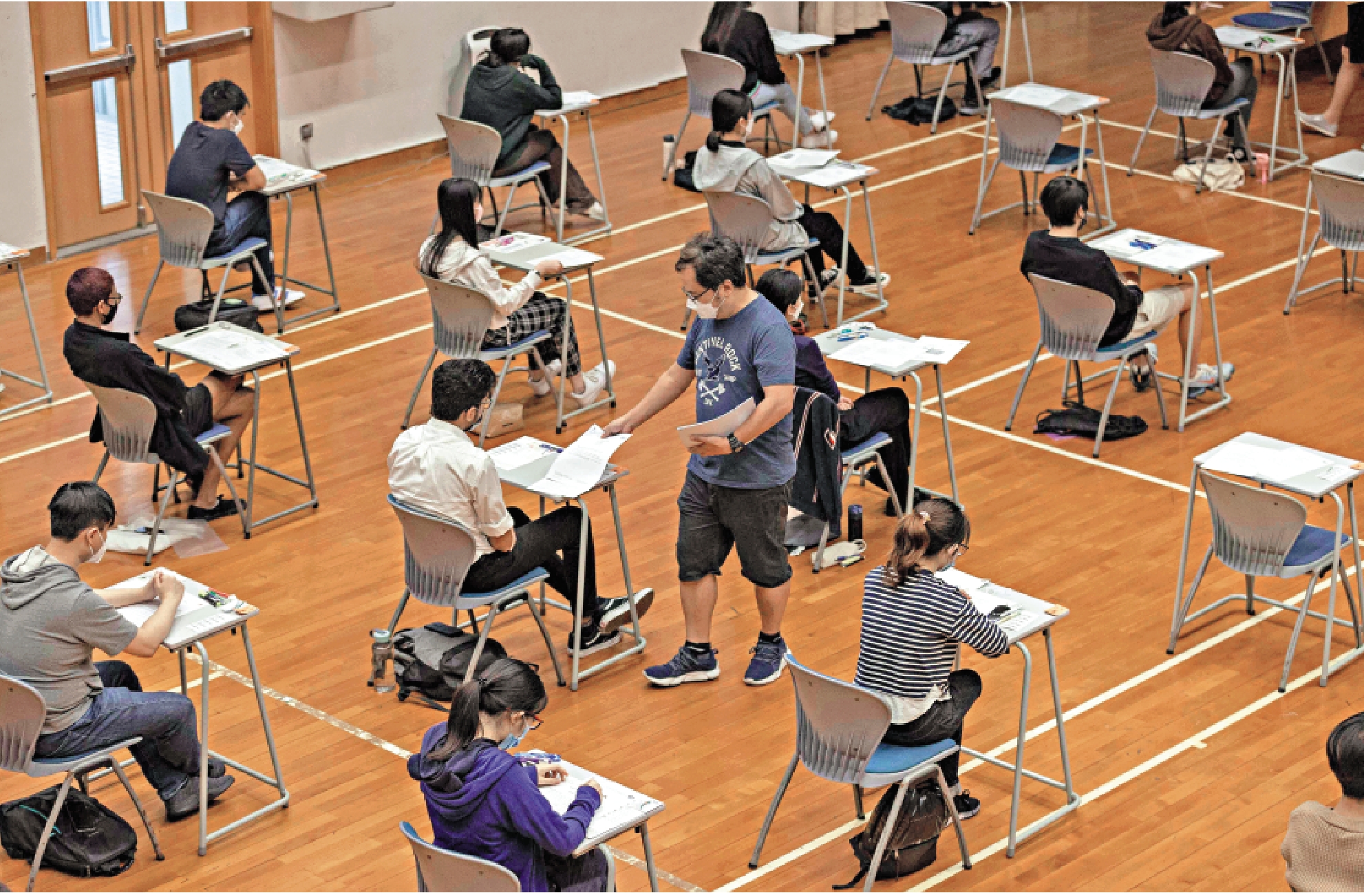 考評局續指,試場學校會設體溫監察站,若發現考生發燒,考務人員會要求考生出示快測陰性結果的相片。而試場學校則會於上午7時45分開始讓考生進入,考生座位間保持不少於1.5米距離。