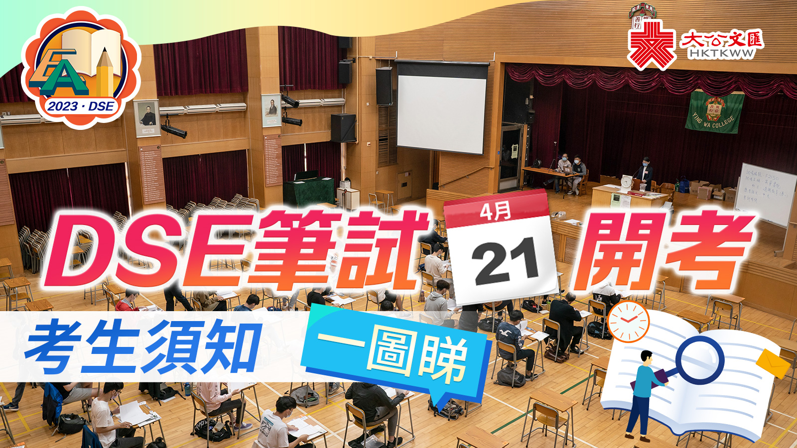 (大公報 記者 鍾怡)全面復常後首個中學文憑試(DSE)甲類科目筆試將於4月21日至5月18日開考。考評局昨日公布考試安排表示,雖然政府已取消各項社交距離措施,但試場仍採取預防感染安排,包括考生進試場前需量體溫、戴口罩、填寫「考生健康申報表」等。考生若有發燒等不適症狀則要進行快測,結果為陽性者須前往位於九龍新蒲崗的「指定試場」考試,或申請成績評估。