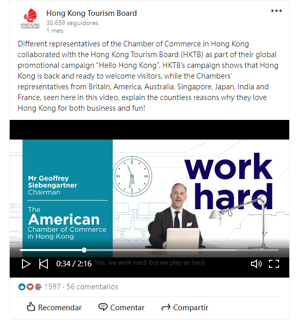 趙富年在視頻中表示,香港極具吸引力,大家熱愛工作,亦享受生活。從美食到購物,香港應有盡有,他提到自己最愛的食物是點心。他在短片最後強調,相信香港會強勢反彈,變得更強。