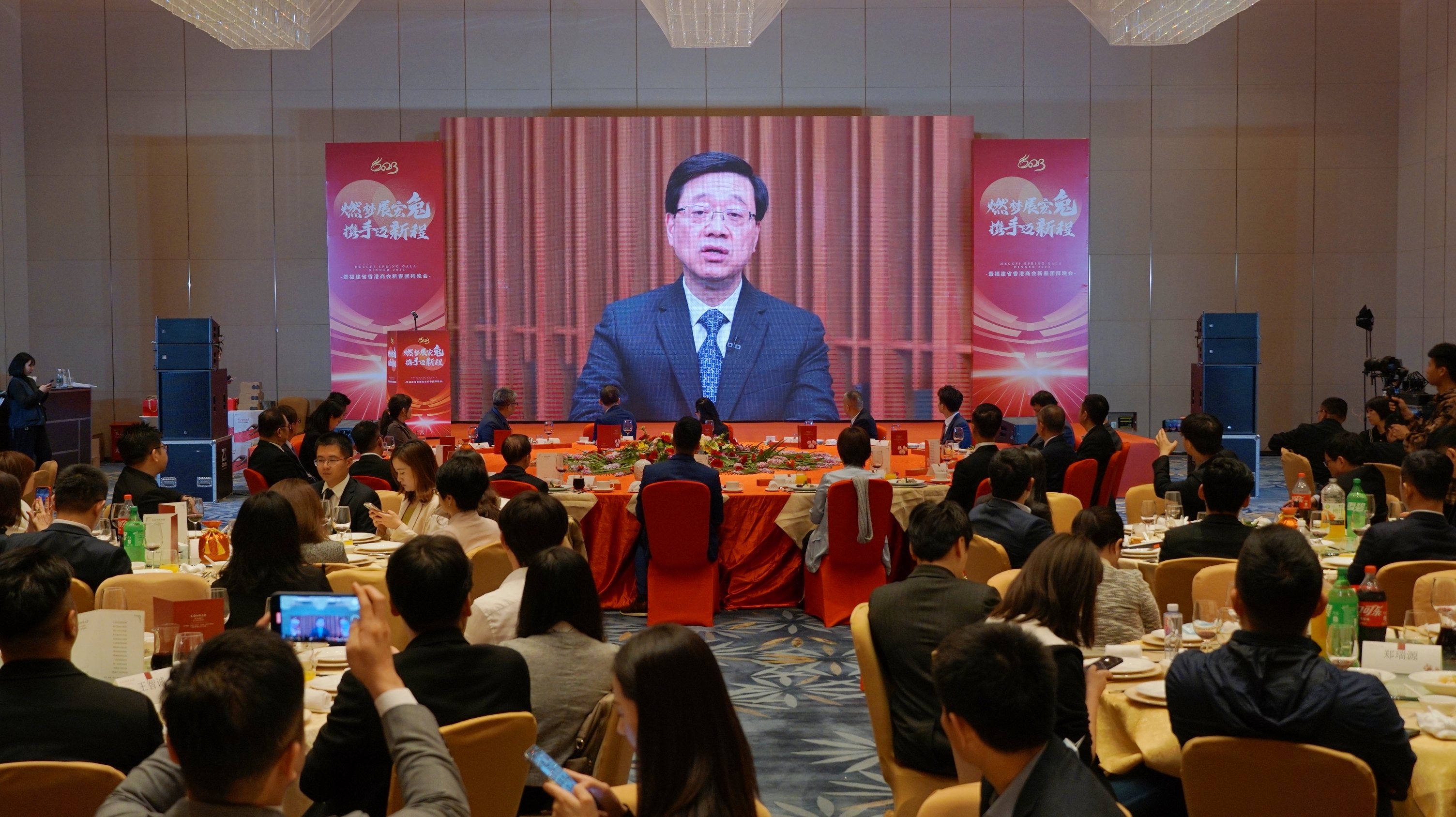 李家超表示,香港企業家一直積極參與福建發展,香港亦為福建最大的外資來源地,香港將繼續善用「一國兩制」下「背靠祖國,聯通世界」的獨特優勢,服務福建企業走出去,並將外資引進來。「兔年將是繁忙又祥和的一年,如今香港已與內地全面通關,也與國際社會全面接軌。」李家超邀請福建企業及民眾「體驗香港這個盛世之都的新面貌、新發展、新機遇。」