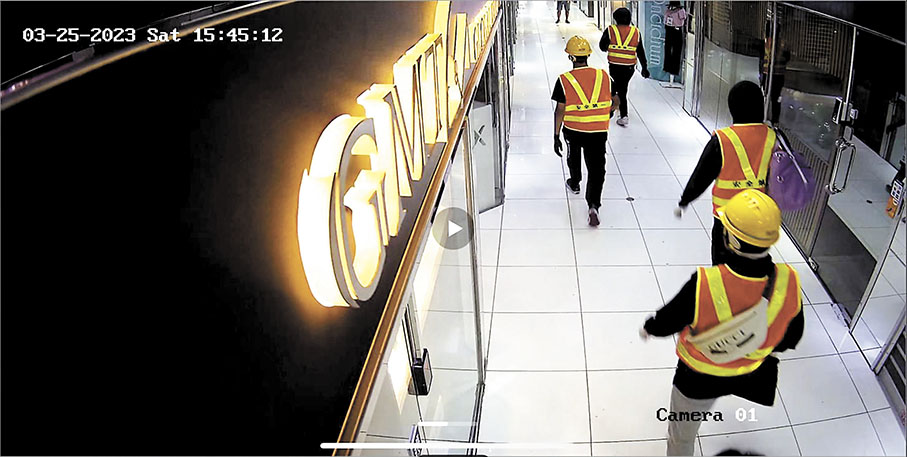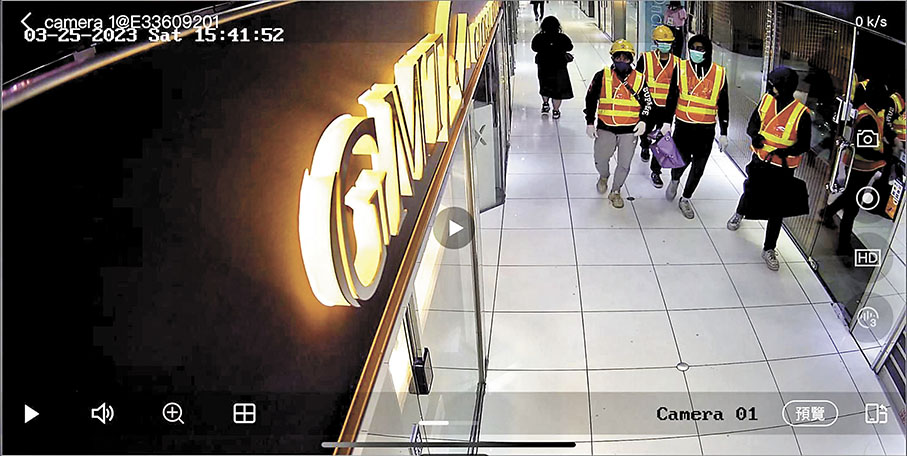 據重慶站購物商場的閉路電視顯示,4名南亞裔匪經過走廊前往錶行所在舖位時,均穿上印有「安全第一」字樣的反光背心、手戴勞工手套。其中2人戴黃色安全帽,另2人用衣帽笠頭,各戴藍色和黑色口罩,其中2人各持紫色及黑色的環保袋,約5分鐘後若無其事沿通道離開,一度與逛街市民擦身而過,但未有人察覺有異樣。