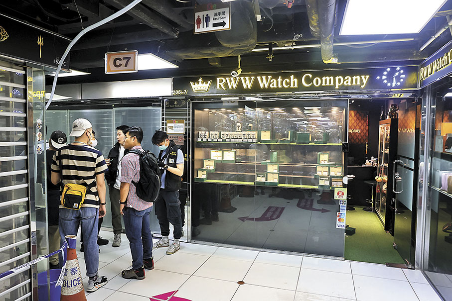 遇劫錶行開業9年,其社交媒體專頁顯示在旺角及銅鑼灣另有分店,專營訂購全新各大品牌名錶,另有高價收購二手名錶及二手零售。據了解,其尖沙咀店內有近百隻名錶,當中九成為勞力士,最貴一隻為標價66.8萬元的勞力士Daytona綠面手錶。