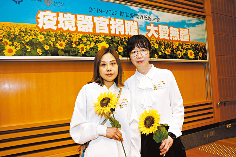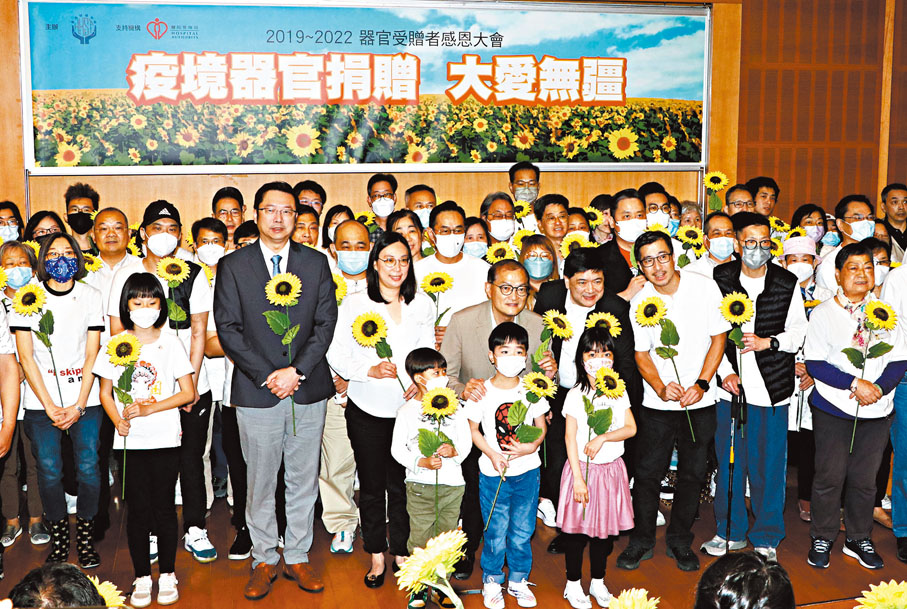 香港移植學會昨日主辦「器官捐贈 大愛無疆」器官受贈者感恩大會,近300名器官受贈者及其家人出席,向捐贈者及醫護人員致謝。