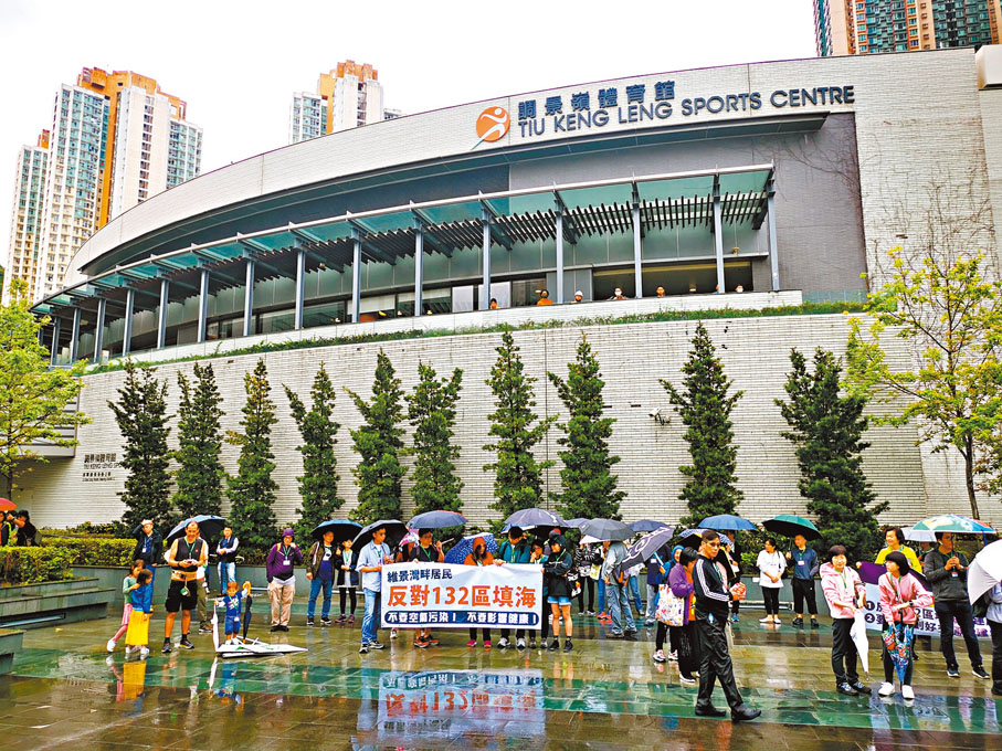 另有屬維景灣畔居民的大橫額寫有「反對132區填海,不要空氣污染!不要影響健康!」其他參與居民亦手持寫有同樣訴求的請願牌。
