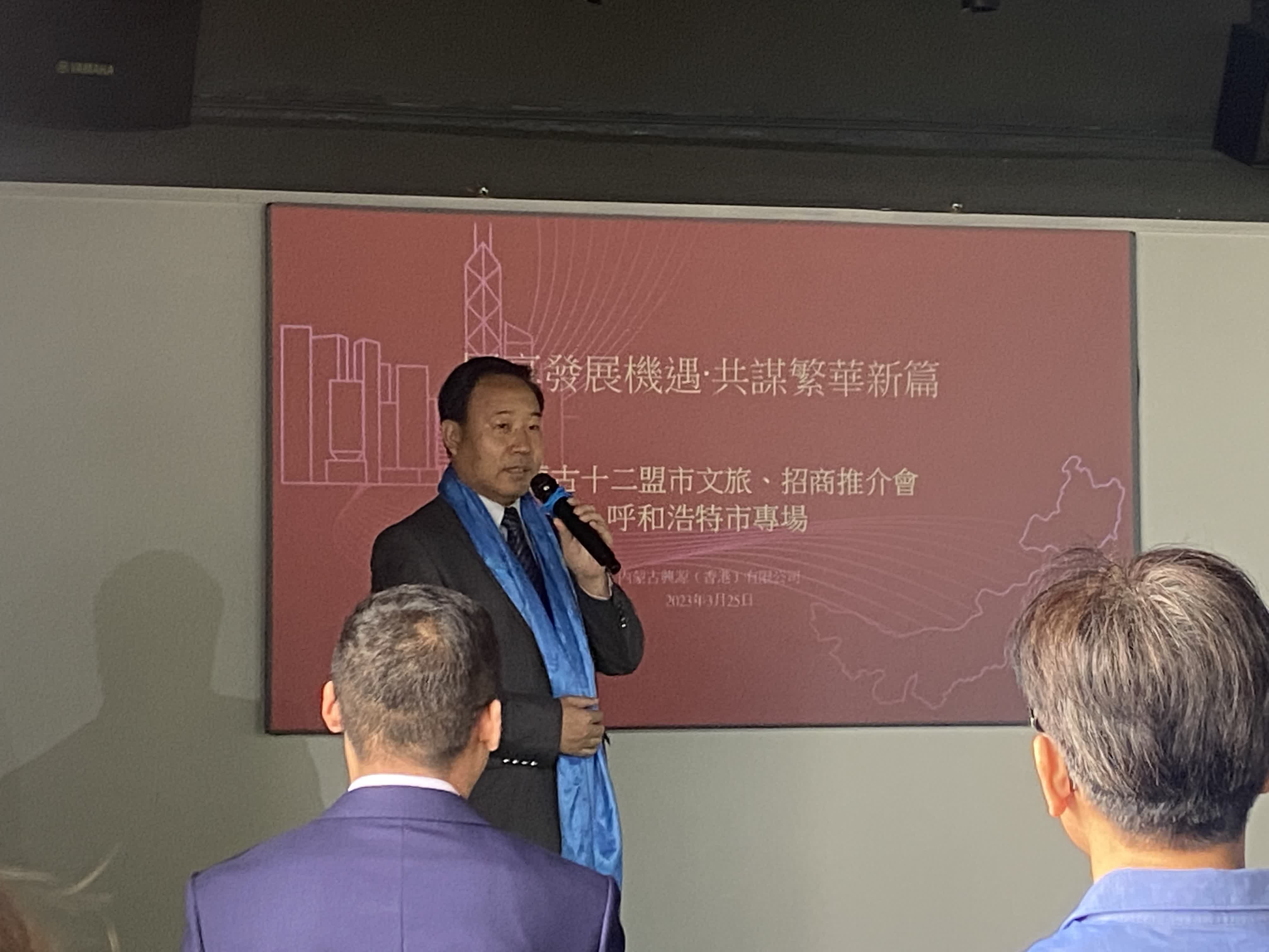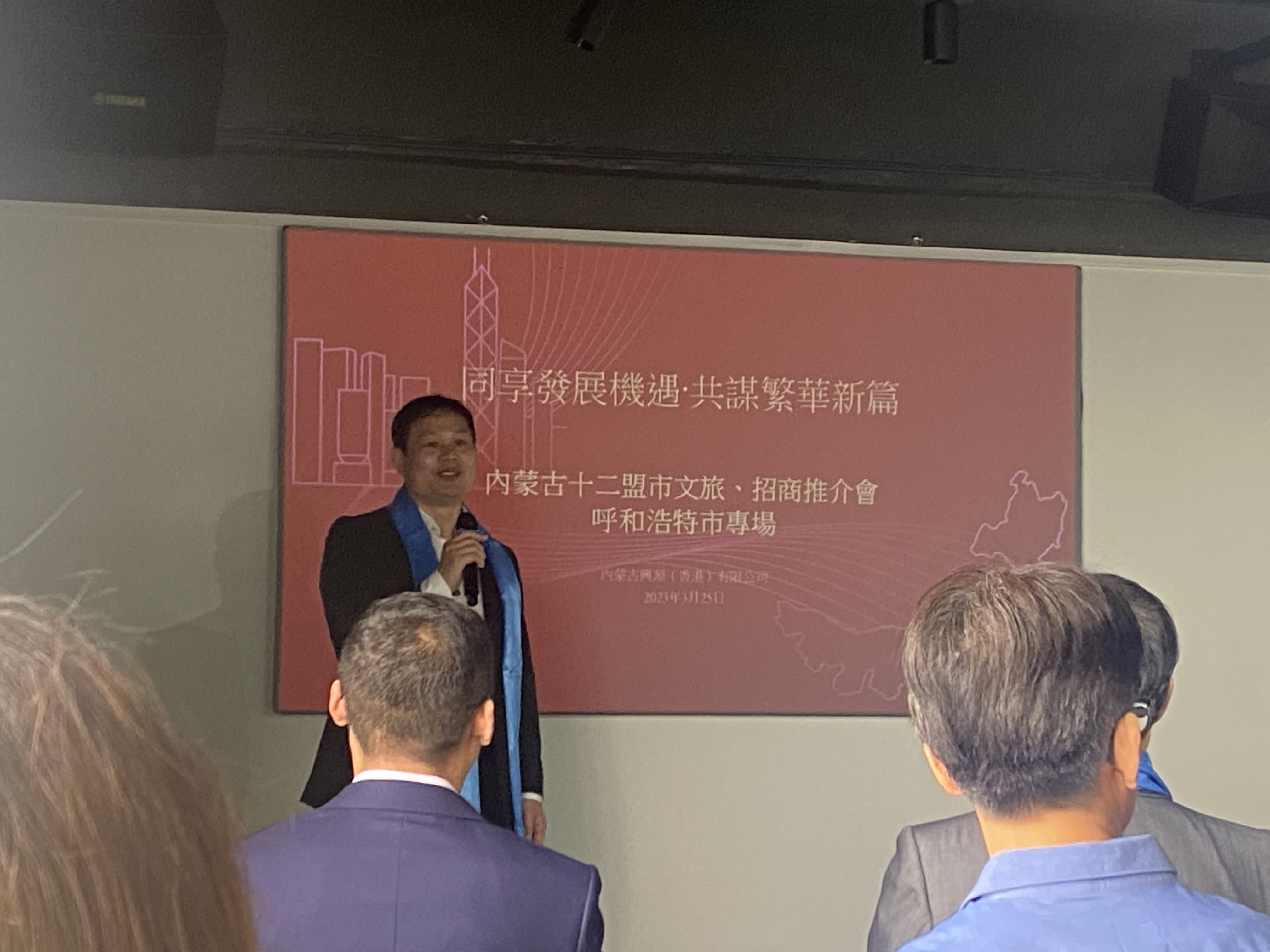 內蒙古興源(香港)有限公司日前在上環億利商業大廈舉辦「內蒙古十二盟市文旅、招商推介會-呼和浩特市專場」。活動邀得國家文化和旅遊部亞洲旅遊交流中心主任張棟和港區內蒙古自治區政協委員楊潤色等出席並主禮。內蒙古興源(香港)有限公司董事、副總經理李文杰為主禮嘉賓獻贈哈達,表示歡迎。