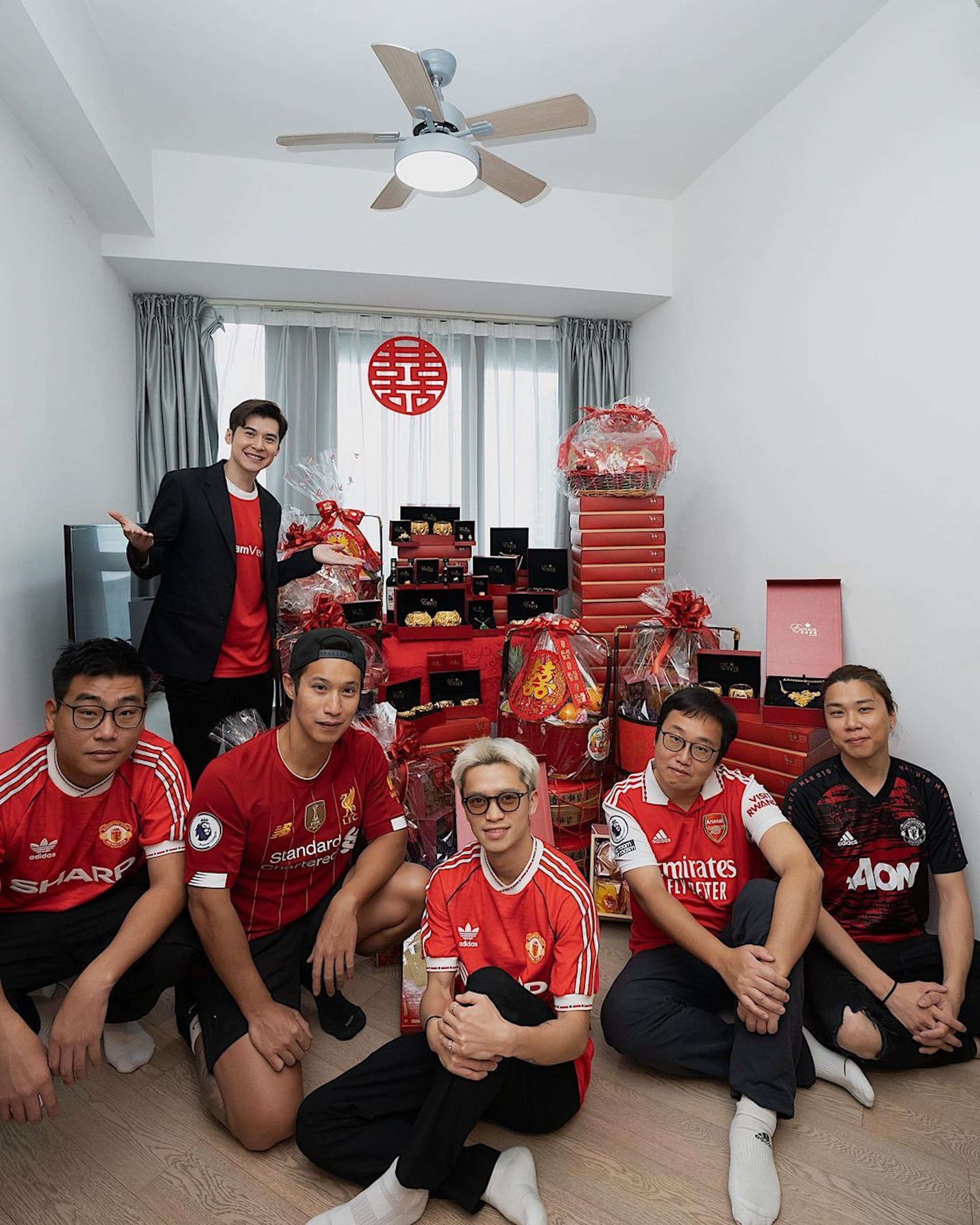 陳家樂留言:「準備咗幾日,今日終於過大禮,開頭以為好輕鬆,但原來都係緊張到瞓唔到覺,好在兄弟多,今日着曬波衫唔踢波來幫我做搬運工人。」Shiga就留言:「還有不夠一個月,原來比想像還有多的準備功夫,所以真係好感恩有好多兄弟姊妹,愛惜我們嘅好友,客戶。心情係開始有點緊張嘅,先來個過大禮,辛苦一班兄弟姊妹們啦!」