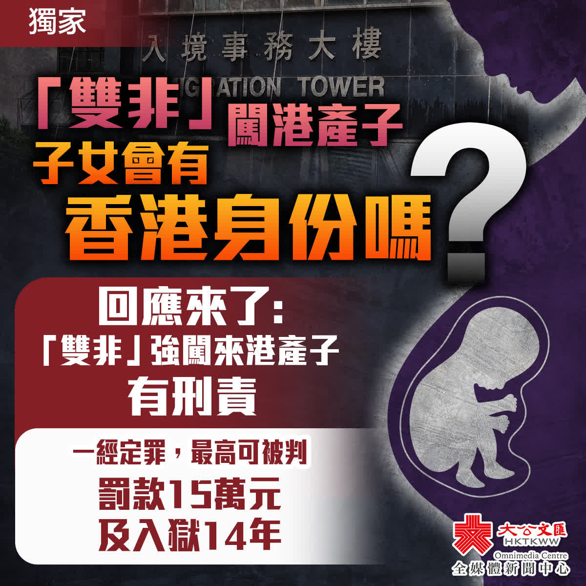大公文匯全媒體報道,一名26歲的內地女子早前以旅客身份抵港,並在未經預約下前往急症室產子。入境處因而向其展開調查。調查期間,被告辯稱她在抵港時對自己已懷孕一事並不知情,及對辦理入境手續時的情況沒有印象。調查人員及後發現,被告於抵港前曾在內地進行產前檢查,並取得被告相關內地產檢紀錄作為證據,繼而向她作進一步查問。被告最終承認,其來港的真正目的是為了在港產子,在辦理入境手續時向入境處職員謊稱沒有懷孕。被告因涉嫌就其懷孕的情況向入境處職員作出虛假申述而被落案起訴,3月22日於沙田裁判法院被判監禁14個月。相關報道後,關於「『雙非』非法來港產子後 孩子會有香港身份嗎?」引起網民熱議。