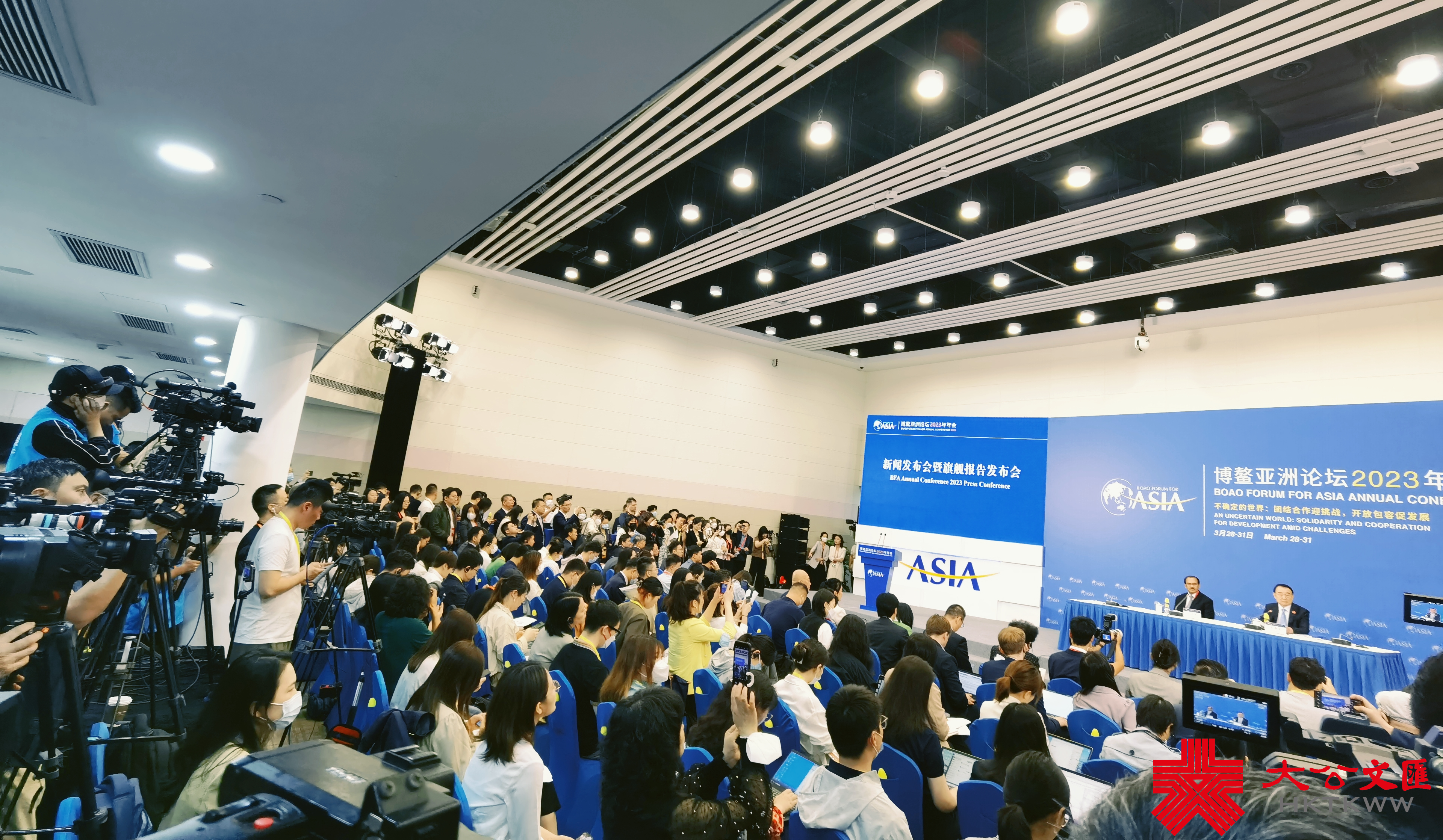 (大公文匯網 記者 何玫、黃寶儀、胡若璋 博鰲報道)以「不確定的世界:團結合作迎挑戰,開放包容促發展」為主題的博鰲亞洲論壇2023年年會今日(28日)舉行新聞發布會暨旗艦報告發布會。論壇秘書長李保東介紹,今年論壇年會全面恢復線下舉辦,共吸引了來自50多個國家和地區的2000多名代表以及170多家新聞機構的逾1100名媒體記者參加。