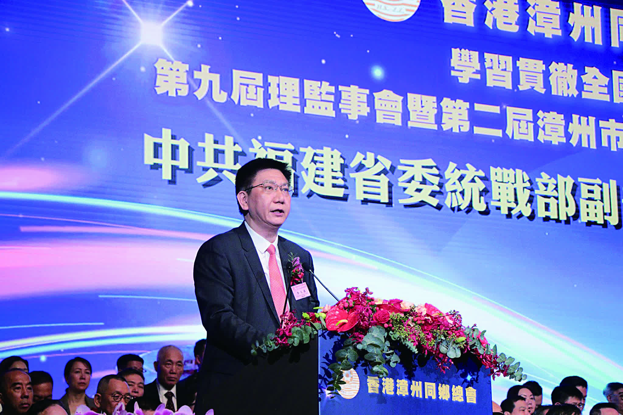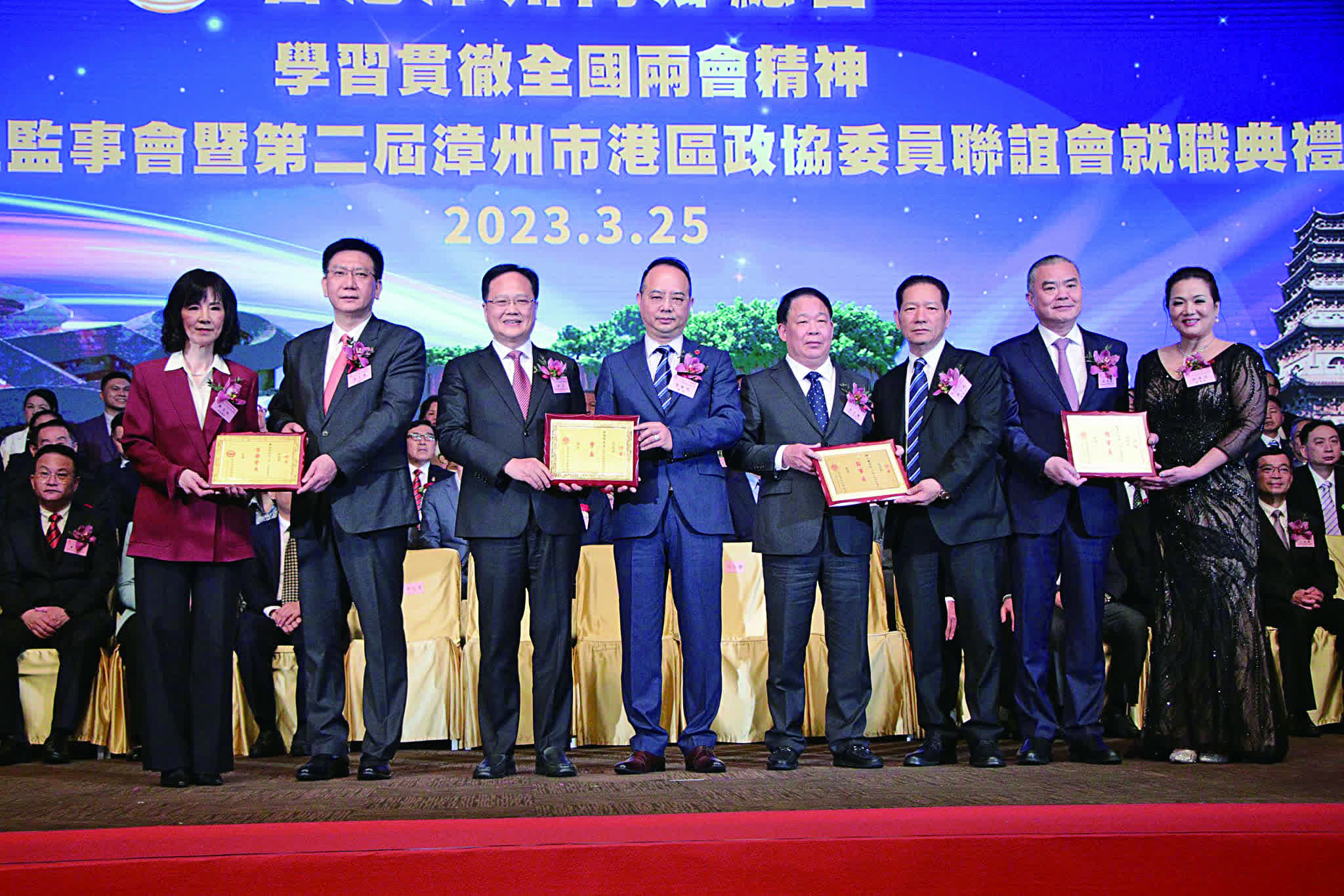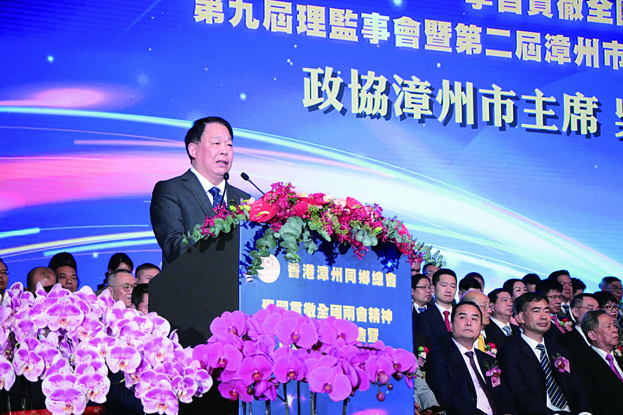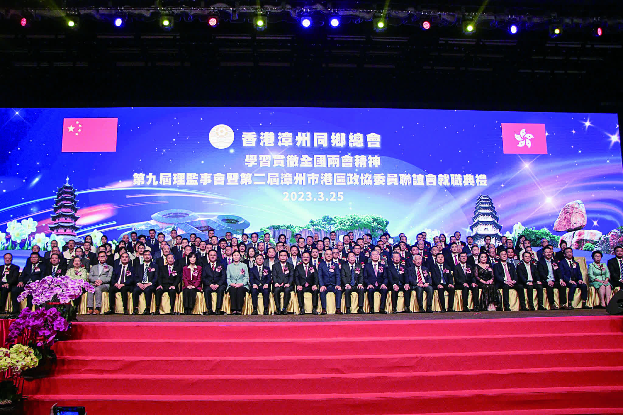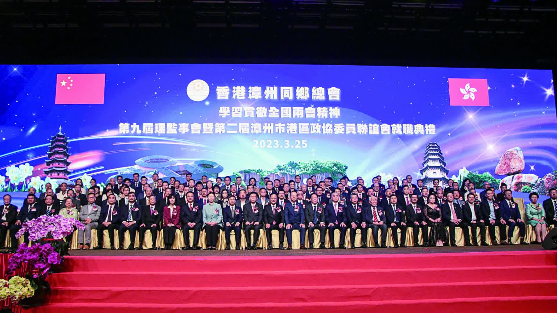 大公文匯網報道,香港漳州同鄉總會(漳州同鄉總會)近日假灣仔會議展覽中心三樓大會堂舉辦「第九屆理監事會暨第二屆漳州市港區政協委員聯誼會就職典禮」。活動邀得中央政府駐港聯絡辦副主任陳冬,中聯辦社團聯絡部部長鍾吉昌,中共福建省委統戰部副部長李文慎,政協漳州市委員會主席吳文團,中共漳州市委常委、統戰部長吳衛紅,駐港國安公署聯絡局副局長王文獻,香港福建社團聯會主席施清流,香港福建社團聯會榮譽主席林廣兆,華閩(集團)有限公司董事長劉革生,中聯辦港島工作部副部長尤斌,信和集團主席黃志祥等出席並主禮,場面熱鬧。