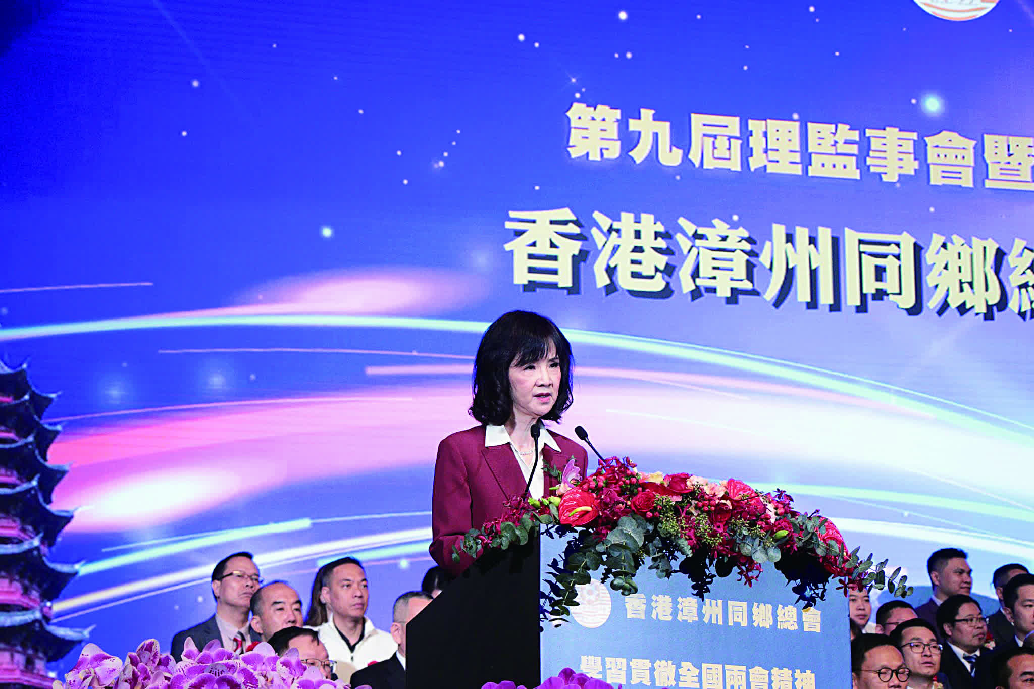 李文慎在致辭中代表福建省委統戰部、福建海外聯誼會向到場的領導、嘉賓致以誠摯的問候,向長期以來關心支持福建發展的香港各界人士表示衷心的感謝。他表示,漳州同鄉總會自成立以來始終秉持愛國、愛港、愛鄉的優良傳統,堅定維護「一國兩制」的方針,貫徹落實愛國者治港的原則,為維護香港繁榮穩定,促進兩地經濟社會發展做出了積極的貢獻。同時他表示,當前福建省正在深入學習貫徹中共二十大精神,聚焦習近平總書記來閩考察時提出的「四個更大」重要要求,全力發展數字經濟、海洋經濟、綠色經濟、文旅經濟,培育高質量發展新的增長極,為各類企業在閩投資興業提供更大的機遇和更廣闊的舞台。