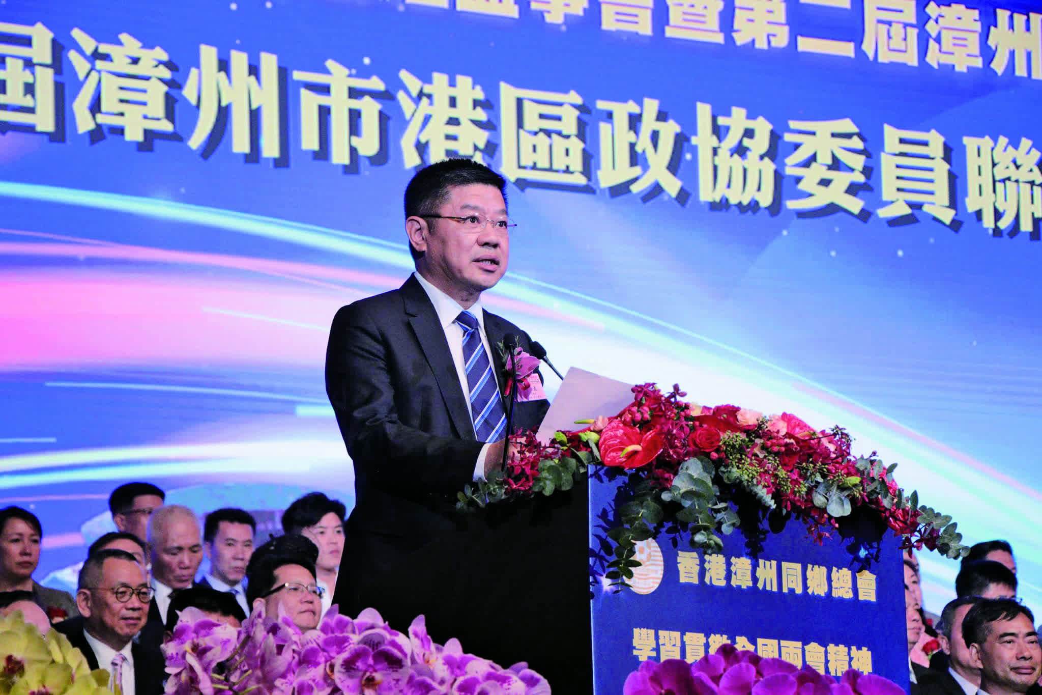 他指出,今年是全面貫徹落實中共二十大精神的開局之年,習近平總書記對「一國兩制」和港澳工作提出了一系列的新理念、新思想、新戰略。他希望新一屆的總會領導班子能夠深入學習貫徹二十大精神以及習近平主席在慶祝香港回歸祖國25周年大會上的重要講話精神,團結引領在港廣大漳籍鄉親,持續壯大愛港愛鄉力量,在以中國式現代化全面推進中華民族偉大復興中,助力發揮香港獨特作用,為促進香港繁榮穩定和漳州高質量發展作出新的更大的貢獻。