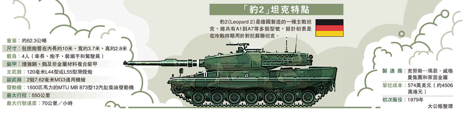 大公報綜合CNN、法新社、《衛報》報道:德國總理朔爾茨27日證實,德國向烏克蘭承諾提供的18輛「豹2 A6」主戰坦克已全部抵達烏克蘭。同時,烏克蘭國防部證實,已接收首批英國「挑戰者2」主戰坦克,以及來自美國及德國的步兵戰車。分析指,近期抵烏的坦克將參與烏軍「即將到來的」春季大反攻,勢必為戰事火上澆油。