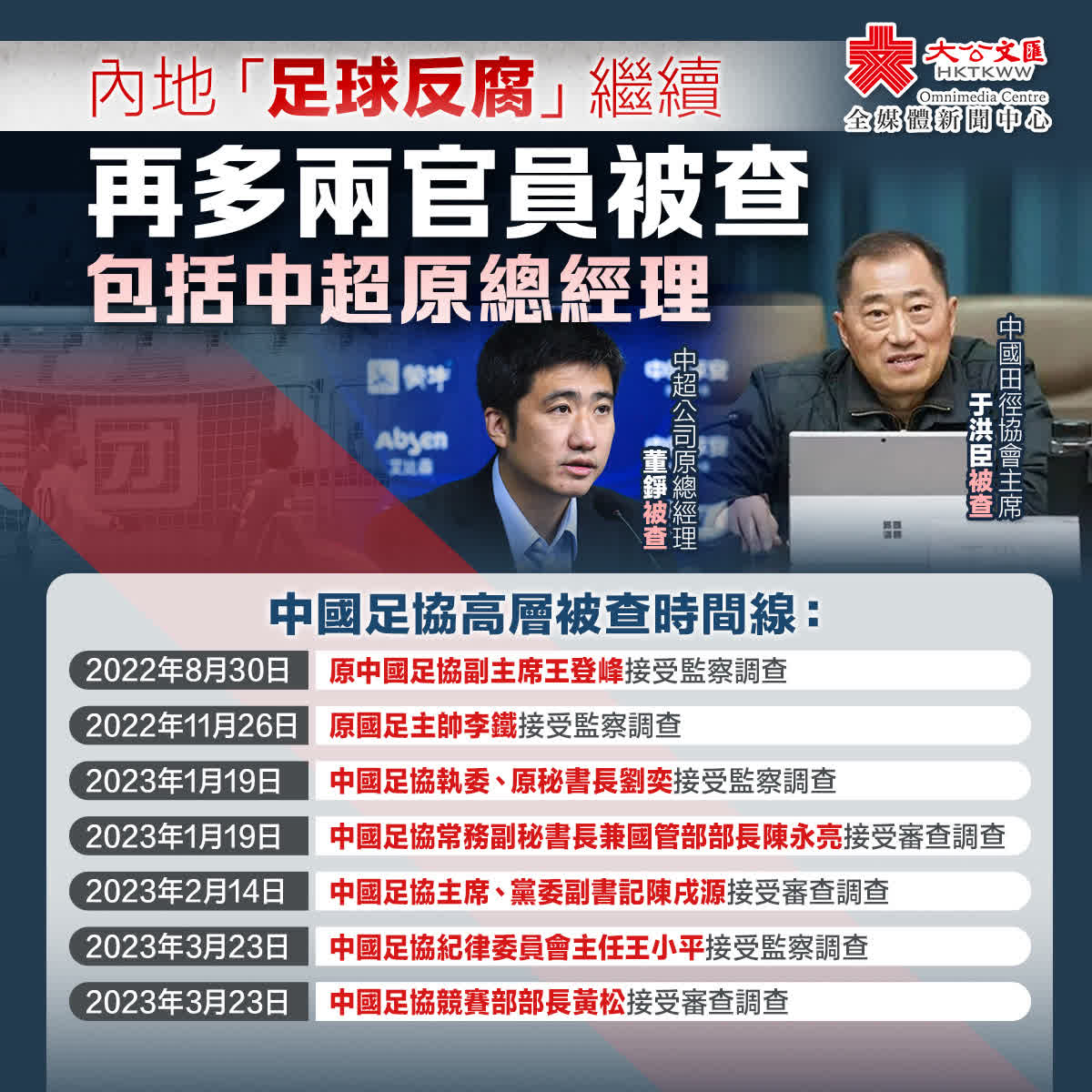 2023年3月23日,中國足協競賽部部長黃松接受審查調查