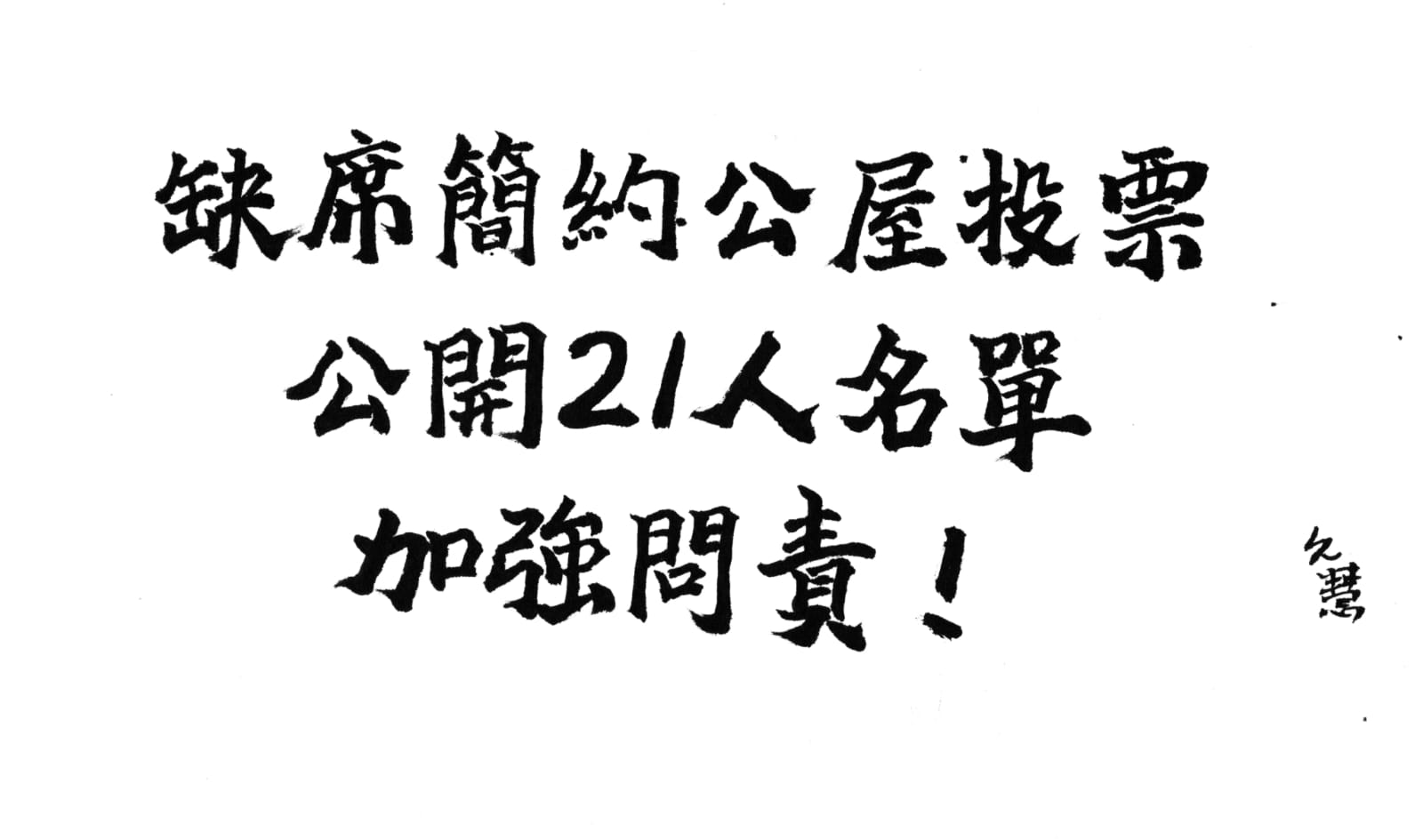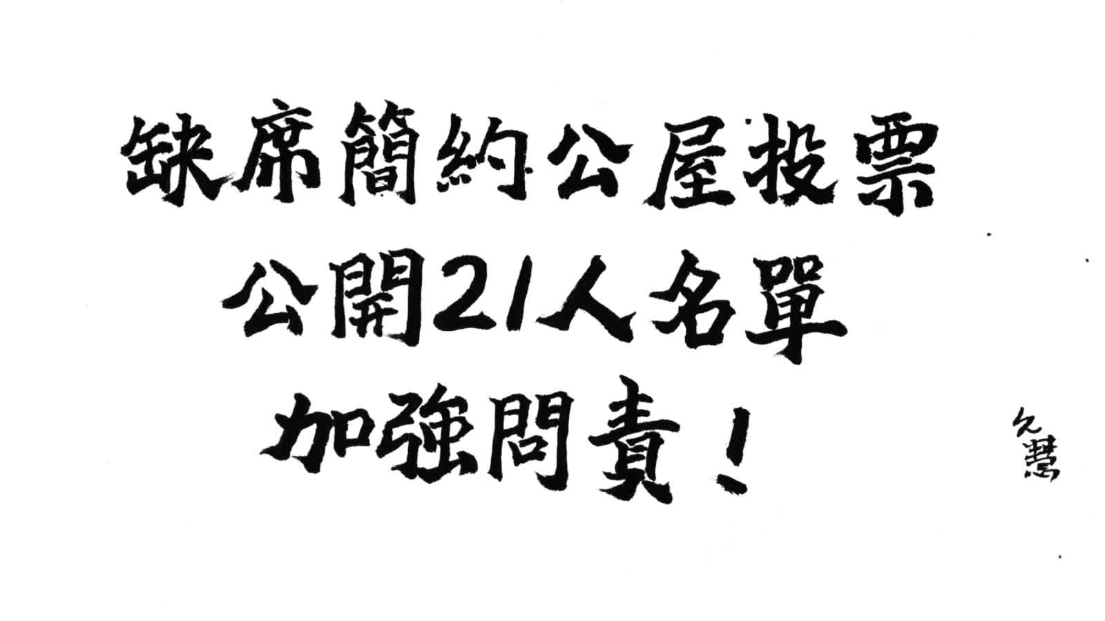 「- 要記名,下次選舉要公布出席議會次數,等市民知道他們的出席率,來決定應唔應該再投票比佢。