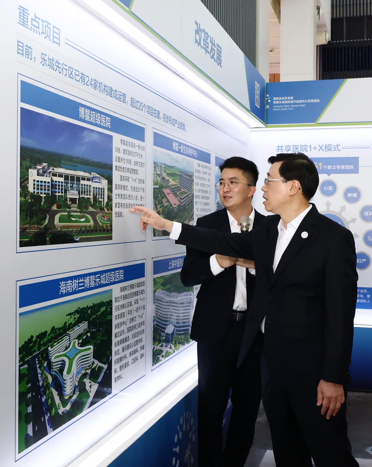 李家超表示,下午先到博鰲樂城先行區的國際創新藥械展,了解到「醫療特區」享有多項優惠政策,包括海南可以加快審批特許藥械在「醫療特區」使用。博鰲樂城先行區已有24家醫療機構開業運營,還有25家醫療機構在建或籌建,初步形成醫療機構聚集。當中,有4間港資公司參與投資項目,擬提供治理罕見病藥產品、尖端癌症療法,及輔助生產專科服務。