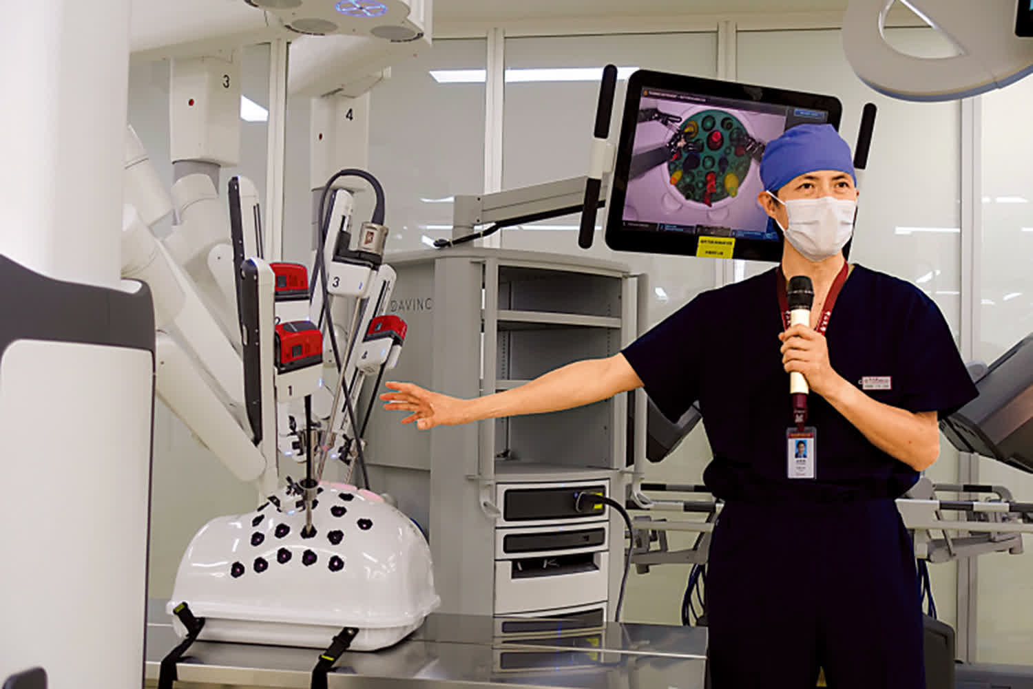 除了運輸、檢測環節「科技感」滿滿。在達芬奇手術機器人教培中心,記者看到了有四條手臂、每個手臂都有「眼睛」高清攝像頭的手術機器人,其「眼睛」所拍攝畫面將同步在屏幕上。外科醫生吳榮佩說:「我們可以透過另一台機器,遠程操作機器人的手臂,為患者進行微創手術。機械臂可旋轉720°,透過機械臂手術,可以避免醫生手抖等問題,進行更精細的操作。」他介紹,該機器人可應用於普通外科、胸外科、泌尿外科等手術。目前該培訓中心在醫院啟動後,將開放給港澳台及國際團隊進行學習和使用。