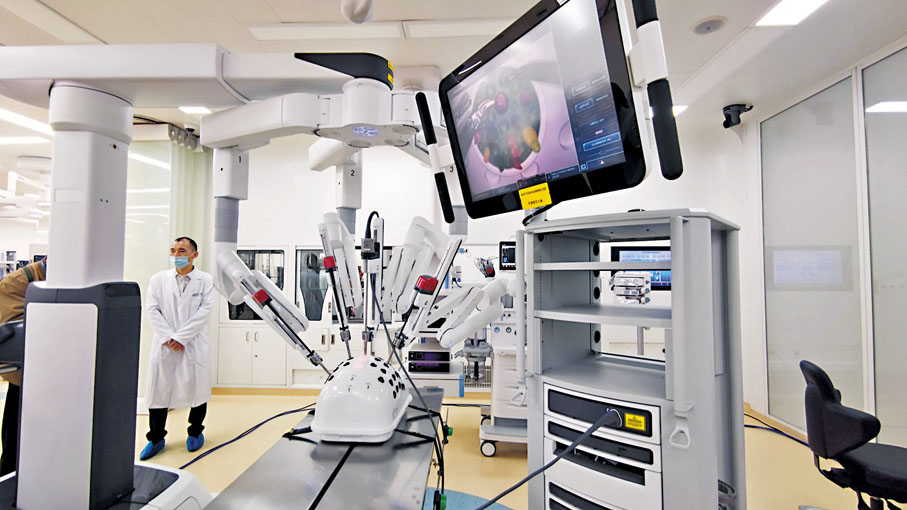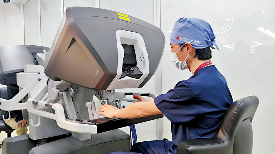 除了運輸、檢測環節「科技感」滿滿,南沙院區連做手術也實現了機械人遠程操作。在達芬奇手術機械人教培中心,香港文匯報記者看到了有四條手臂、每個手臂都有「眼睛」高清攝像頭的手術機械人,其「眼睛」所拍攝的畫面同步在屏幕上。外科醫生吳榮佩說:「我們可以透過另一台機器,遠程操作機械人的手臂,為患者進行微創手術。機械臂可720°旋轉,透過機械臂手術,可以避免醫生手抖等問題,可進行更精細的操作。」他介紹,該機械人可應用於普通外科、胸外科、泌尿外科等手術。目前該培訓中心在醫院啟動後,將開放給港澳台及國際團隊進行學習和使用。