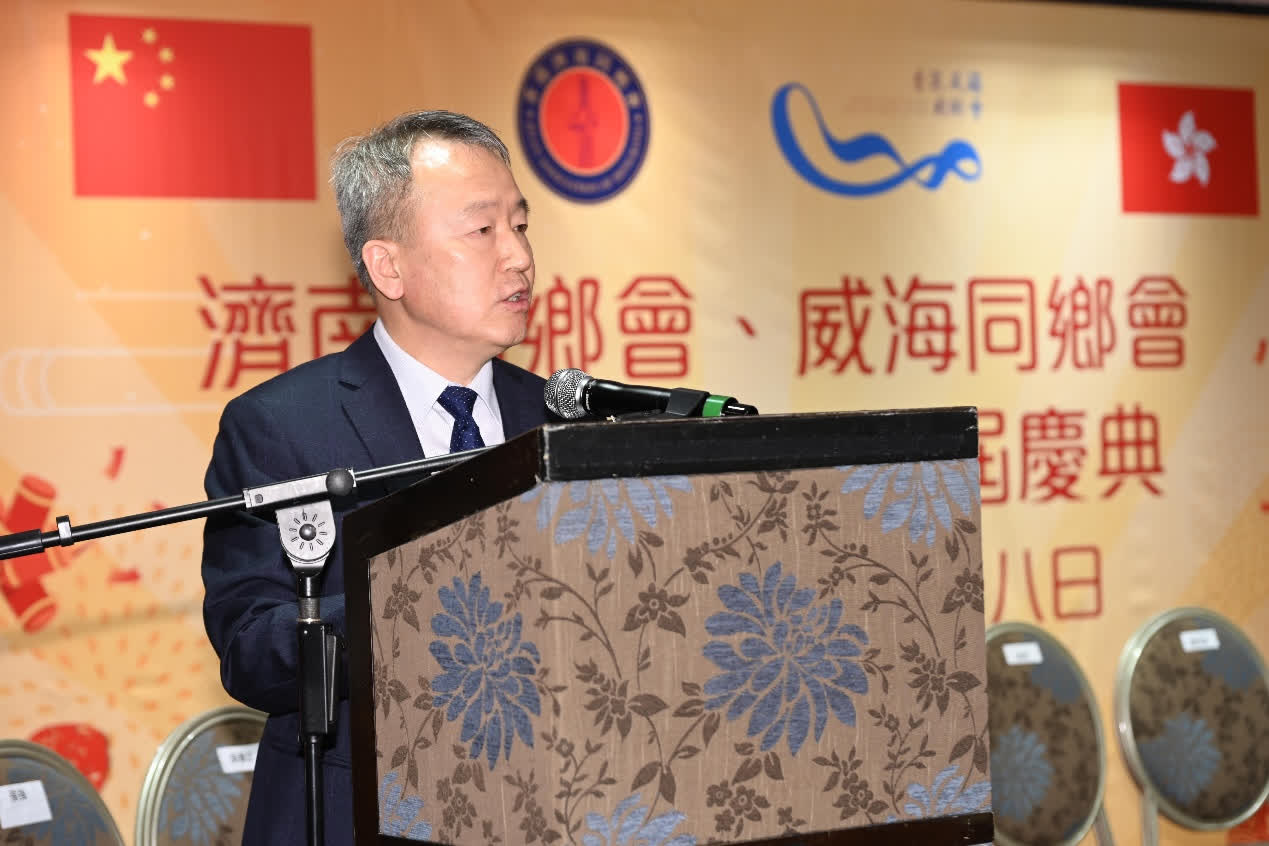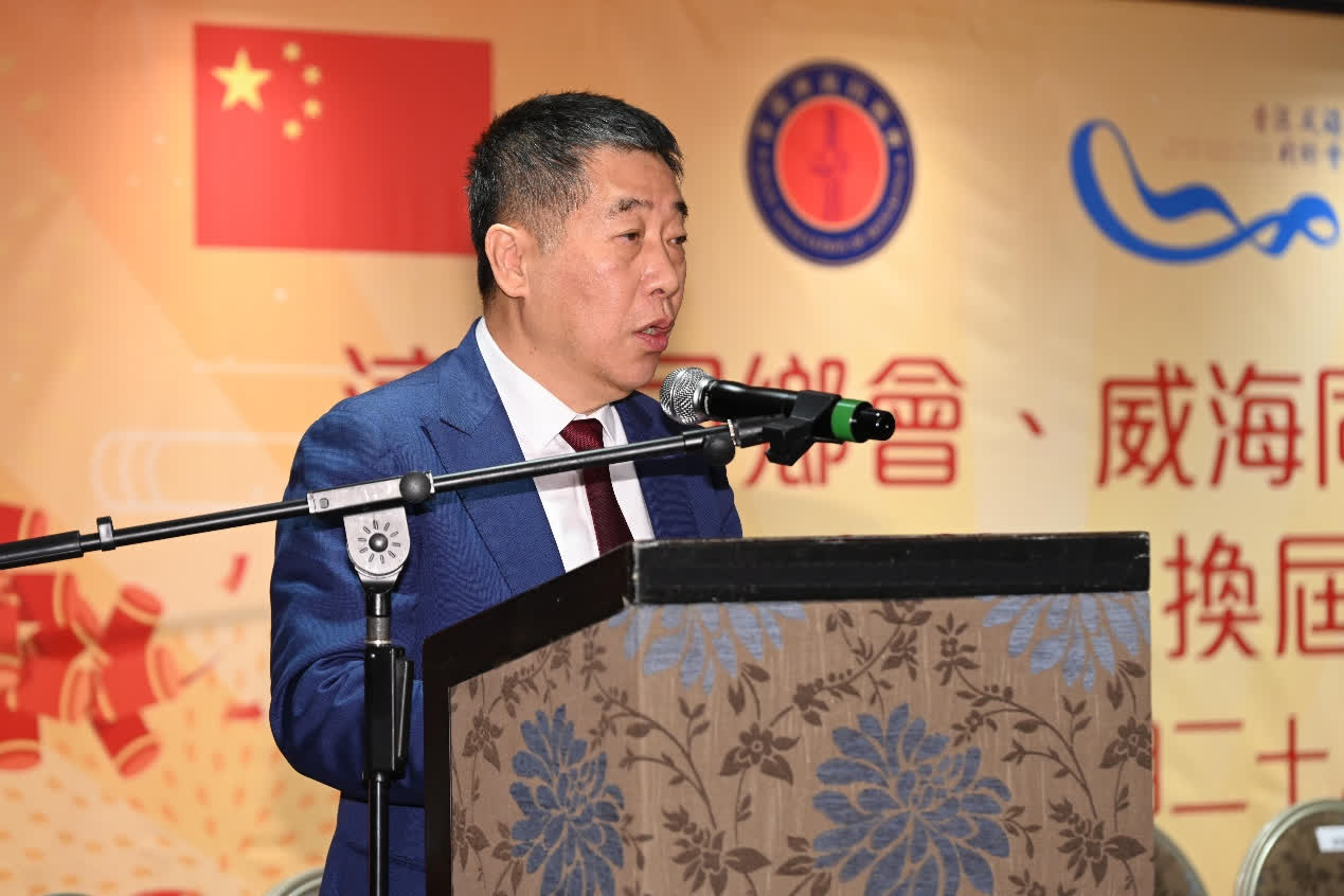 華魯控股集團董事長樊軍,威海市委統戰部副部長、市橋辦主任程曉軍,全國政協委員、香港山東社團總會會長朱新勝在晚宴上致辭。他們對於過去幾年間,香港濟南同鄉會與香港威海同鄉會在抗擊新冠疫情等香港社會重大事件中的表現給予了高度評價,並表達了對同鄉社團未來發展的期許。