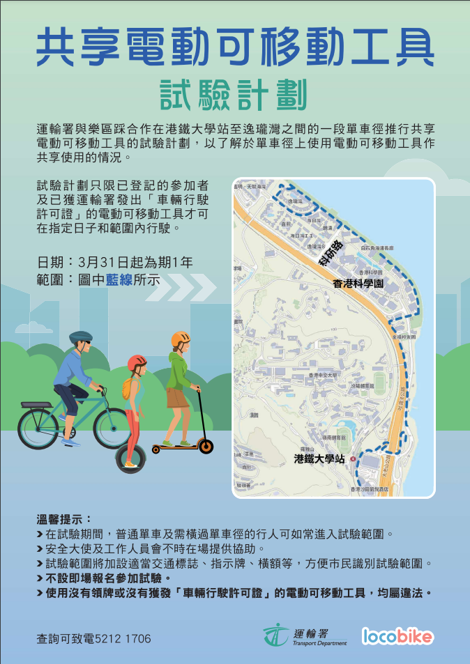 關鍵詞:電單車白石角共享單車運輸署