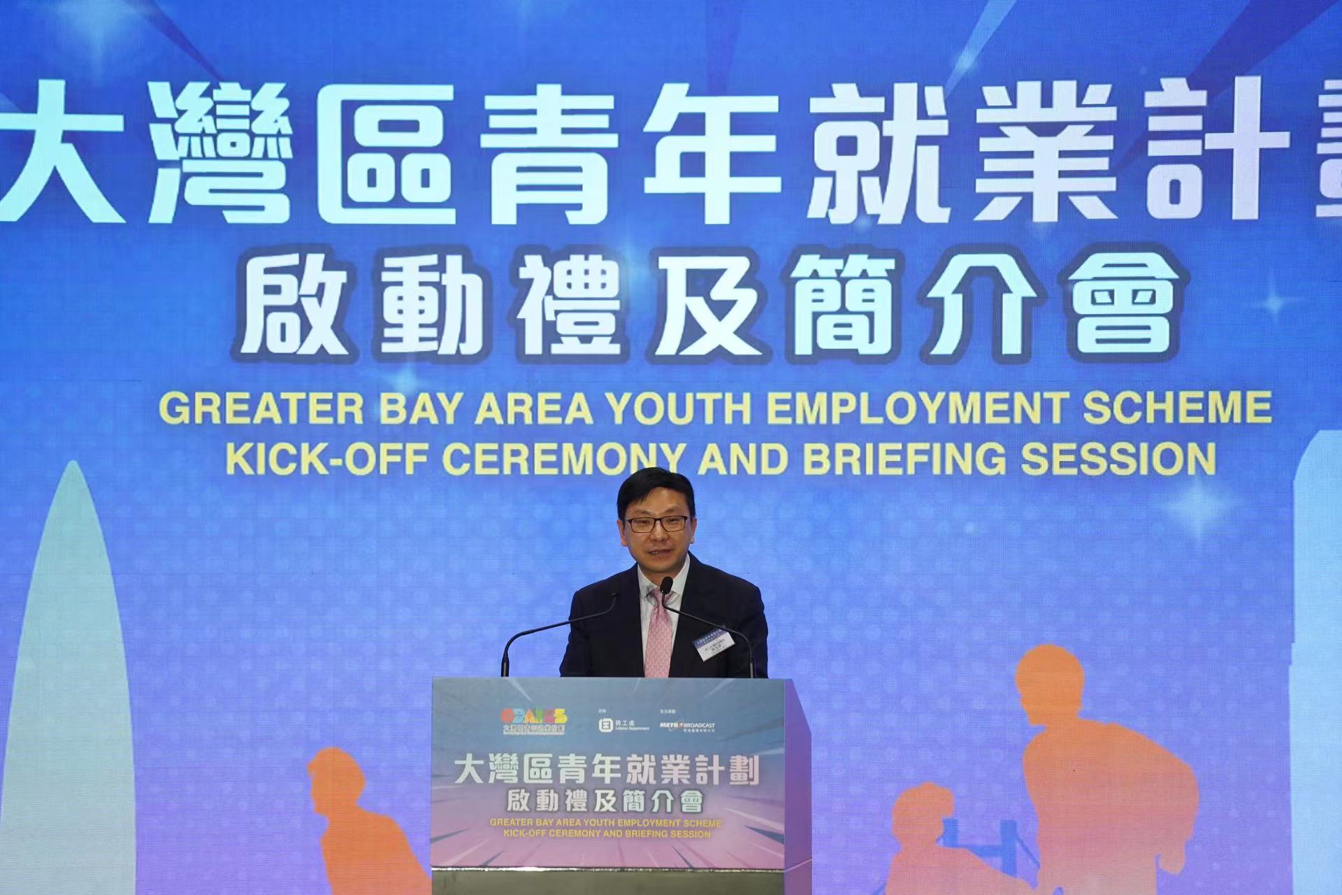 勞工及福利局局長孫玉菡致辭時表示,「大灣區青年計劃」曾像新生嬰兒般誕生,而他當年有份推動,今日參加儀式深有感觸。他續指,今屆招聘計劃提供大量就業機會,覆蓋金融、地產和新興科技等行業,相信香港青年只要有意願,就能在此建立人脈網絡、拓展眼界,在大灣區找到屬於自己的機遇,又呼籲更多行業參與,為港青提供更多就業機會。孫玉菡強調,青年到灣區發展或需要支援,現時設有求助熱線和支援服務,局方同時鼓勵曾參與大灣區青年計劃的同學繼續聯繫,以建立更強的網絡。