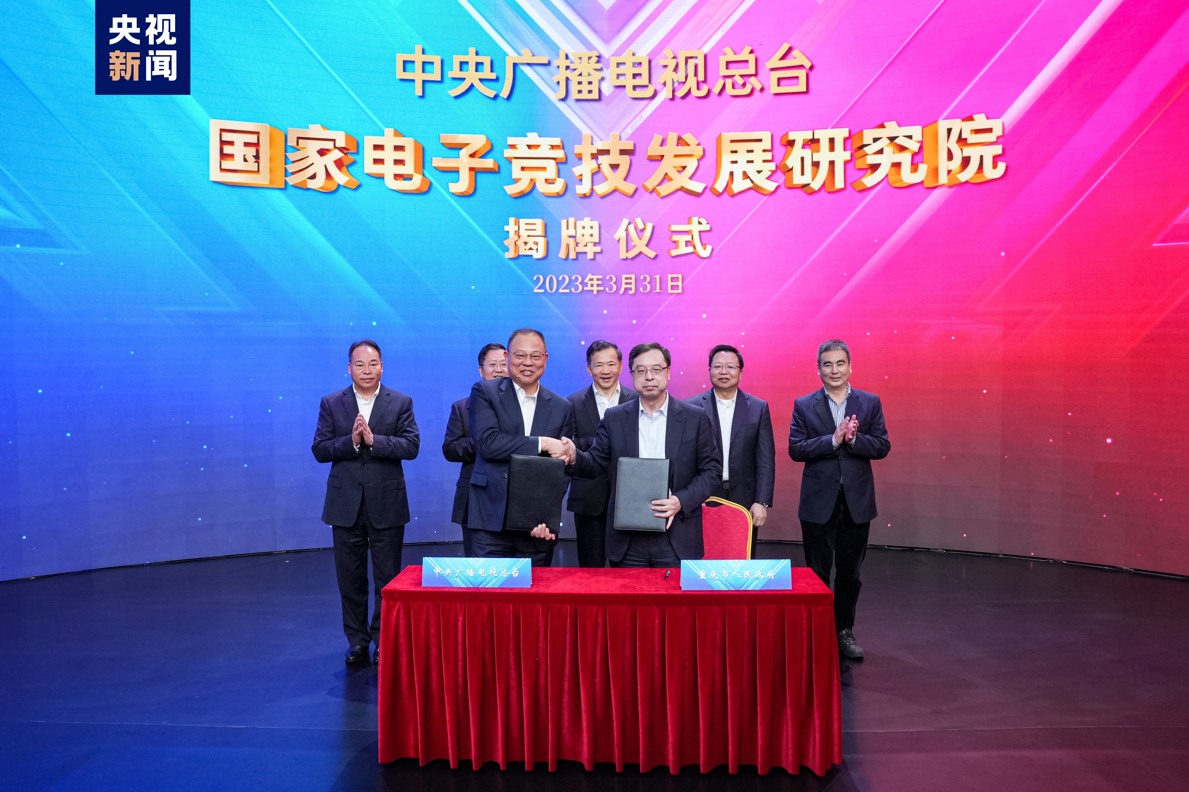 3月31日,中央廣播電視總台國家電子競技發展研究院揭牌儀式在京舉行。中宣部副部長、中央廣播電視總台台長慎海雄出席,並與國家廣播電視總局副局長朱詠雷、重慶市副市長但彥錚等共同為國家電子競技發展研究院揭牌。