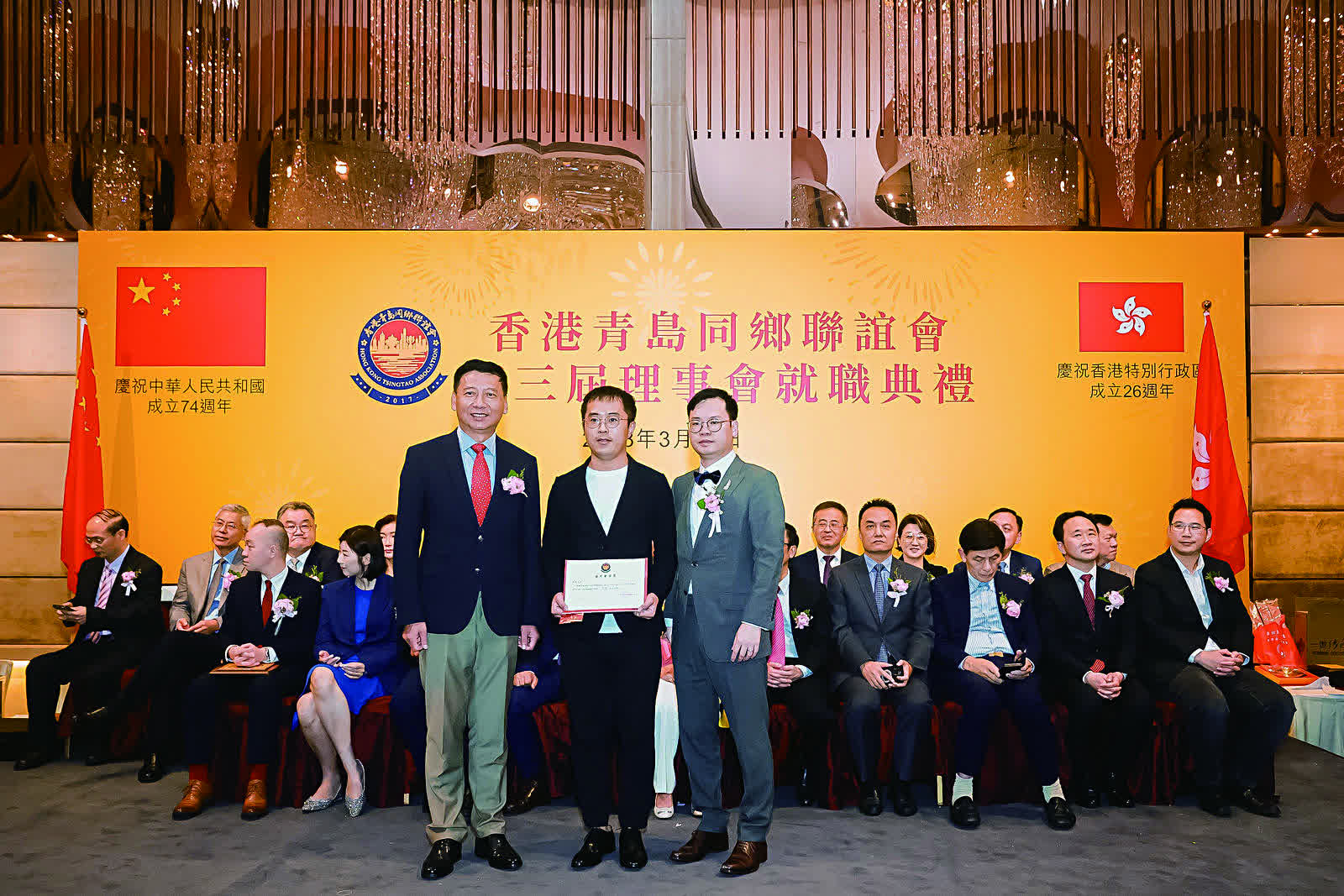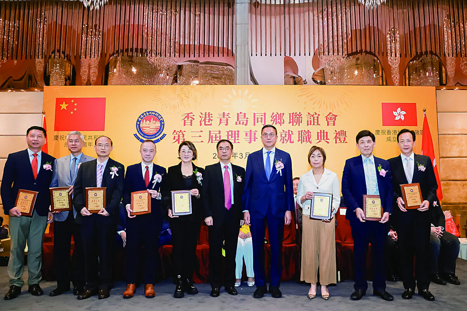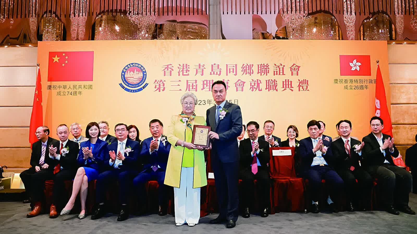 香港青島同鄉聯誼會日前(3月25日)假港島海逸君綽酒店隆重舉行第三屆理事就職慶典活動。中聯辦台務部部長張強、社聯部副部長余學杰,青島市委統戰部常務副部長、青島海外聯誼會常務副會長楊長軍,全國政協常委、港區省級政協委員聯誼會會長施榮懷,全國政協委員、山東省政協常委、香港山東各級政協委員聯誼總會會長、香港山東社團總會會長朱新勝,青島市政協委員、香港青島同鄉聯誼會常務副會長、青年分會會長麥斯韋,香港大公文匯傳媒集團執行總經理韓紀文等一眾主禮嘉賓與香港青島同鄉聯誼會第三屆理事,以及各政商界代表歡聚一堂,場面熱鬧。