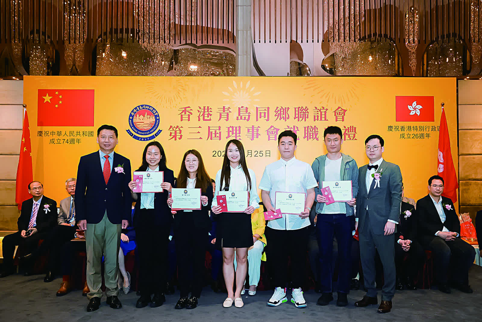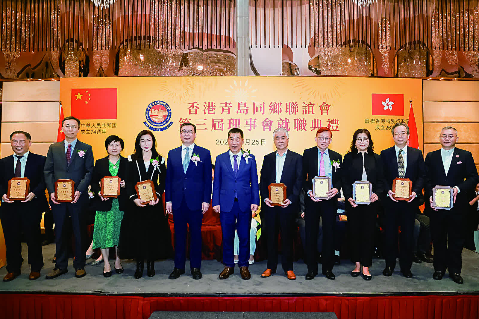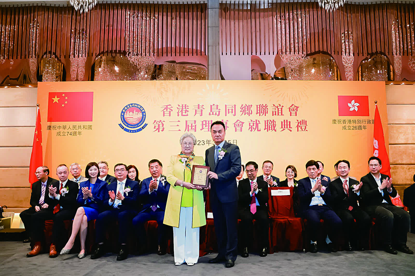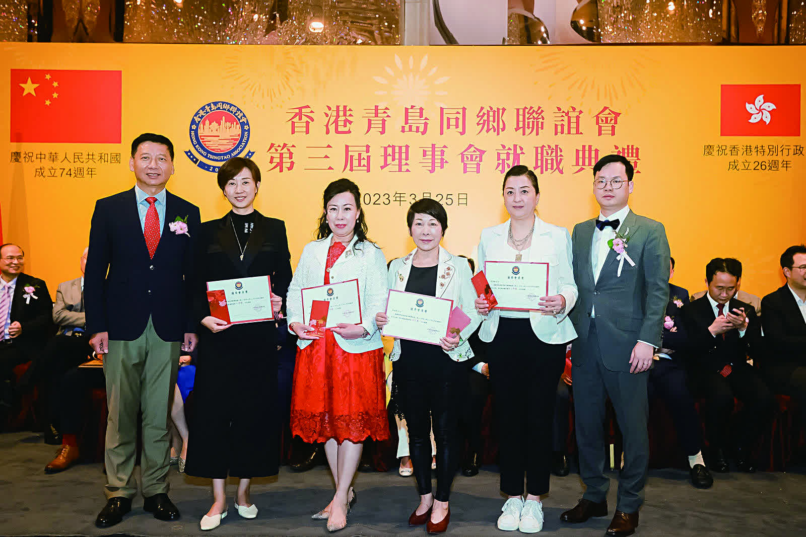 香港青島同鄉聯誼會日前(3月25日)假港島海逸君綽酒店隆重舉行第三屆理事就職慶典活動。中聯辦台務部部長張強、社聯部副部長余學杰,青島市委統戰部常務副部長、青島海外聯誼會常務副會長楊長軍,全國政協常委、港區省級政協委員聯誼會會長施榮懷,全國政協委員、山東省政協常委、香港山東各級政協委員聯誼總會會長、香港山東社團總會會長朱新勝,青島市政協委員、香港青島同鄉聯誼會常務副會長、青年分會會長麥斯韋,香港大公文匯傳媒集團執行總經理韓紀文等一眾主禮嘉賓與香港青島同鄉聯誼會第三屆理事,以及各政商界代表歡聚一堂,場面熱鬧。