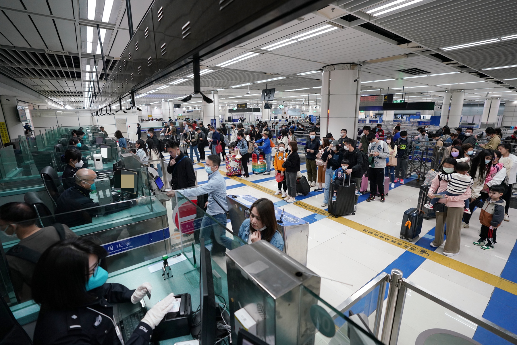 深圳灣邊檢站提示旅客,出門前請仔細檢查本人出入境證件及簽證(註)是否有效,根據自己出行需要盡量避開客流高峰時段,錯峰出行。並根據自己所持證件類別,按照相關標識,正確選擇通道出行,3歲以下幼童、60歲以上長者可選擇特別通道通行。