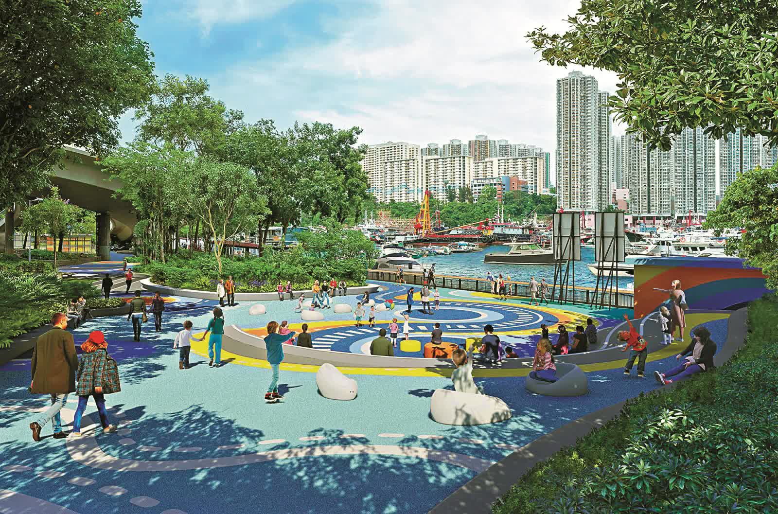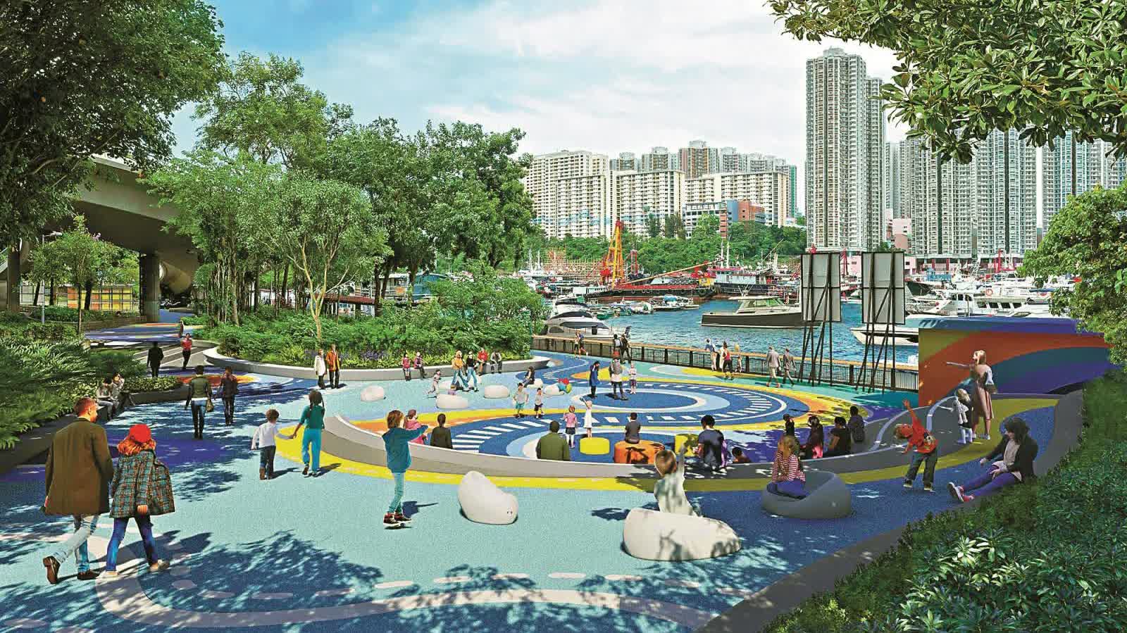 魚市場毗鄰的香港仔田灣海旁,現時是倔頭路與一片爛地,政府計劃優化環境,變身為多用途活動空間。而在香港仔網球及壁球中心旁,將加設兒童遊樂設施,並會先以小型工程項目,展開部分優化海濱工程。