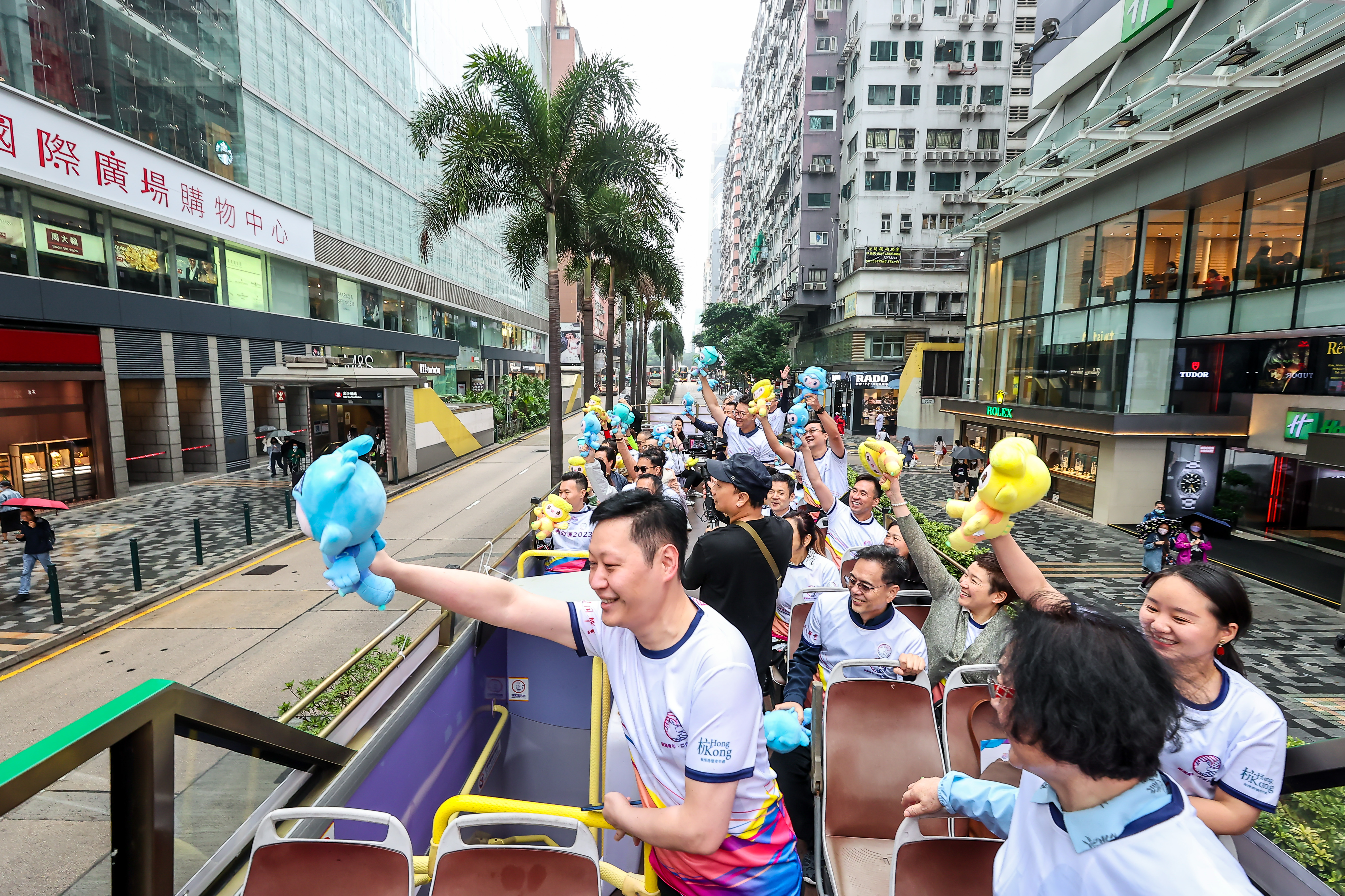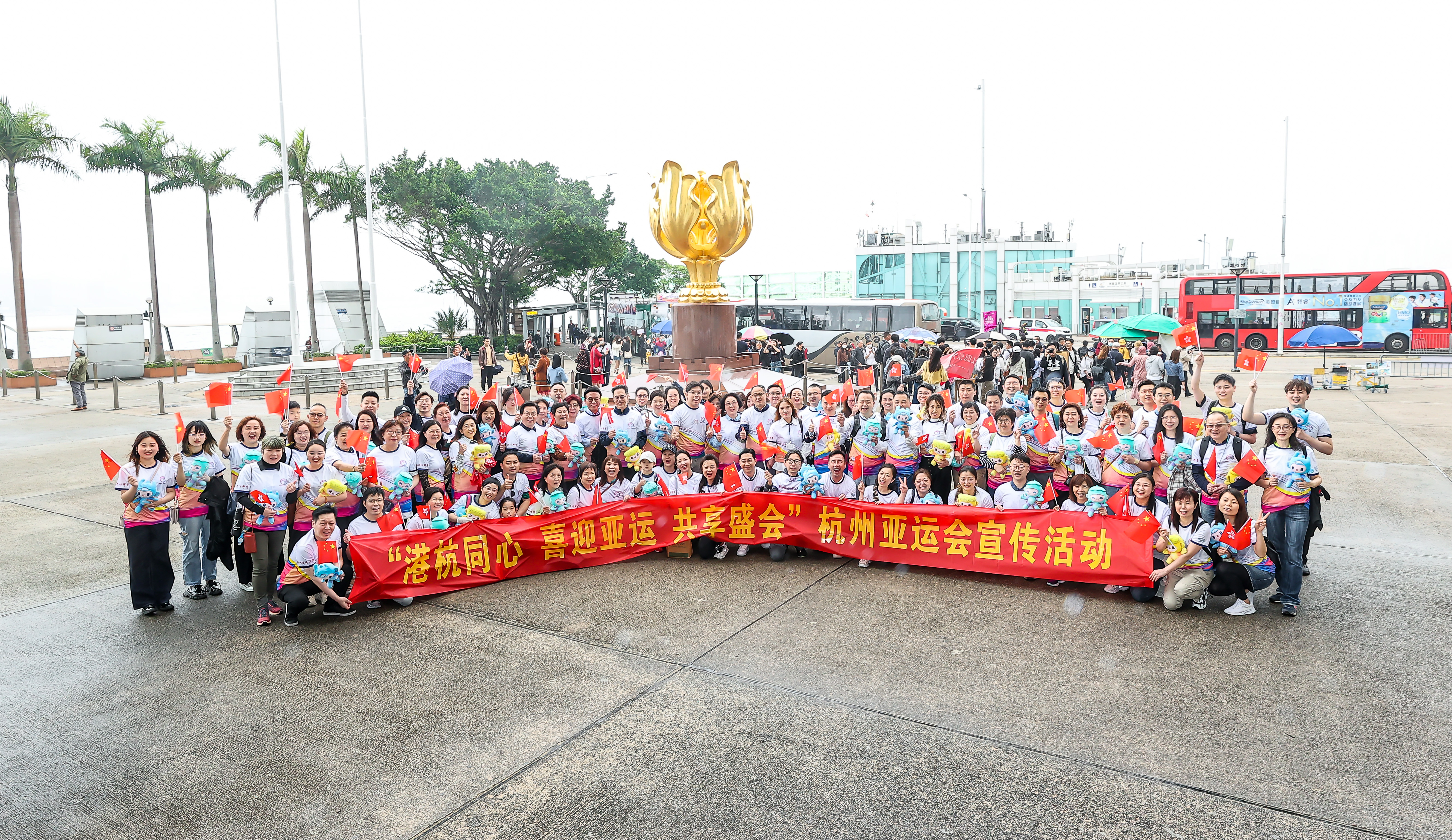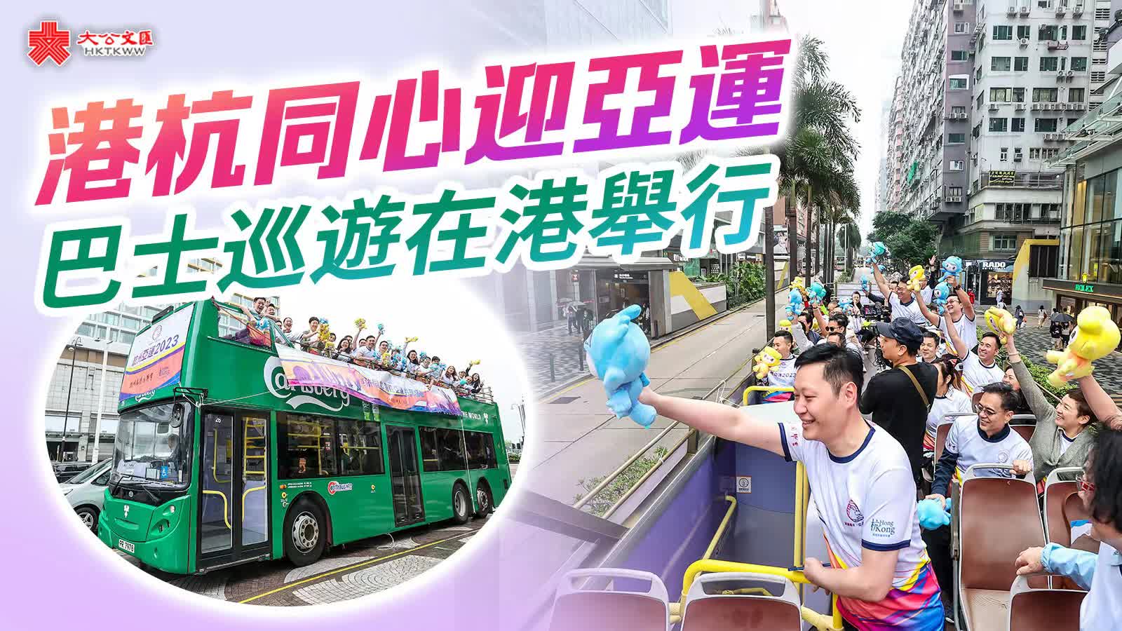 隨後,懸掛有「杭州亞運2023」標誌物的敞篷巴士正式發車。與會嘉賓每人手持一個杭州亞運會吉祥物,沿途不斷向路人熱情揮手,邀請香港市民關注杭州亞運、參與杭州亞運、親臨杭州亞運。「非常有幸能參與這次宣傳杭州亞運會的活動,活動期間大家都顯得非常興奮。」中國香港(地區)商會-浙江前會長歐鎮江表示,「希望在杭州亞運會期間能見到更多香港同胞一起為香港加油。」粵港澳大灣區商業聯合會會長李煒則表示:「杭州亞運是國家大事,是杭州的機遇,我們應該要把香港年輕人帶去亞運會,更加了解國情及祖國強盛。」
