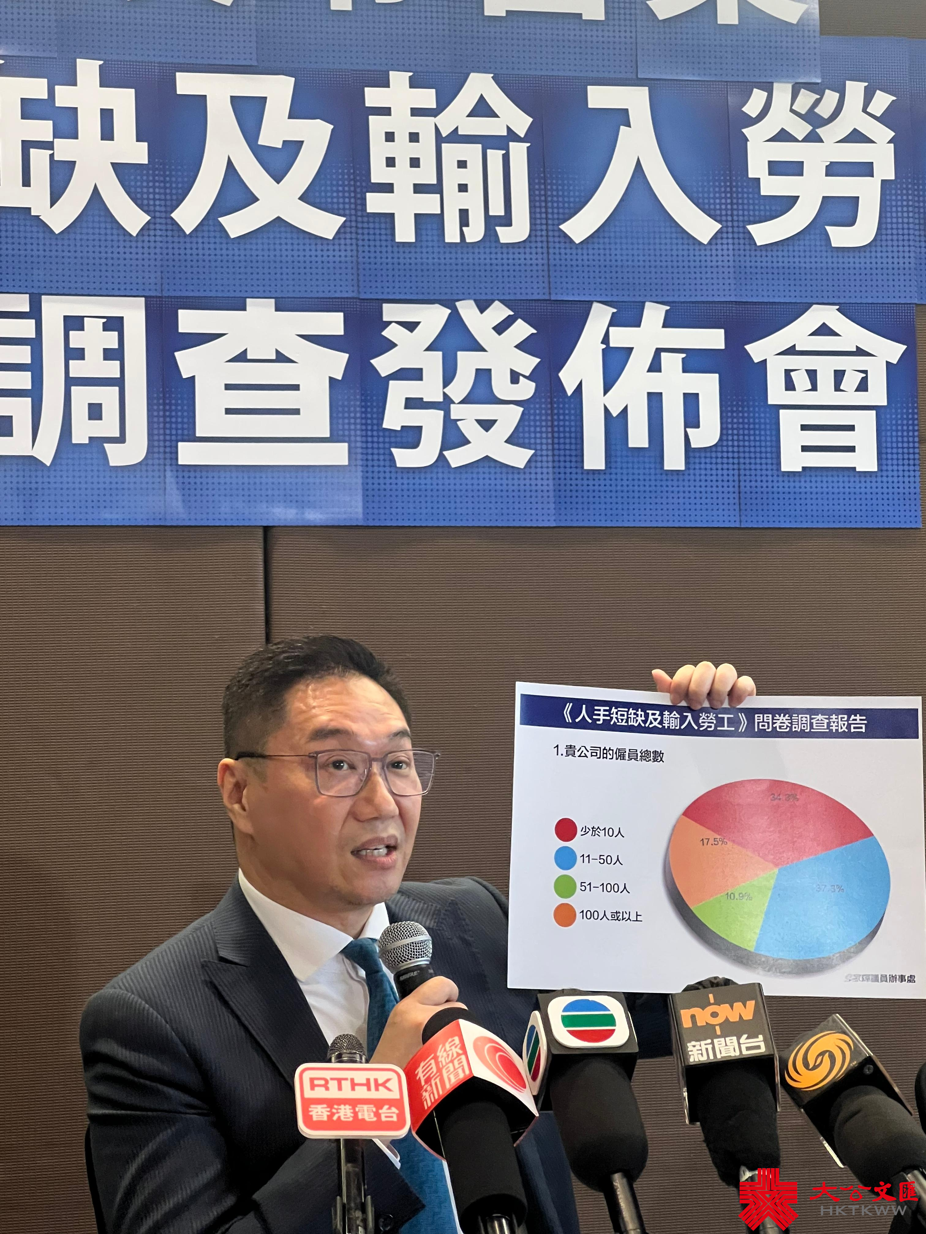 (大公文匯全媒體 記者 周傾芫)隨着社會從疫情中回復正常秩序,零售行業出現了前所未有的人手低谷。有百貨連鎖店代表表示,即便將薪金福利提升20%,本地招聘仍一人難求;多個零售行業表示,即便有現金流,也不敢再開分店,擔心服務無法應付。有見及此,立法會批發及零售界議員邵家輝早前進行了一項《批發及零售業人手短缺及輸入勞工》問卷調查,並在今日(3日)下午舉行記者會公布有關數據,席上邀請業界代表即場分享人手短缺的經營狀況。