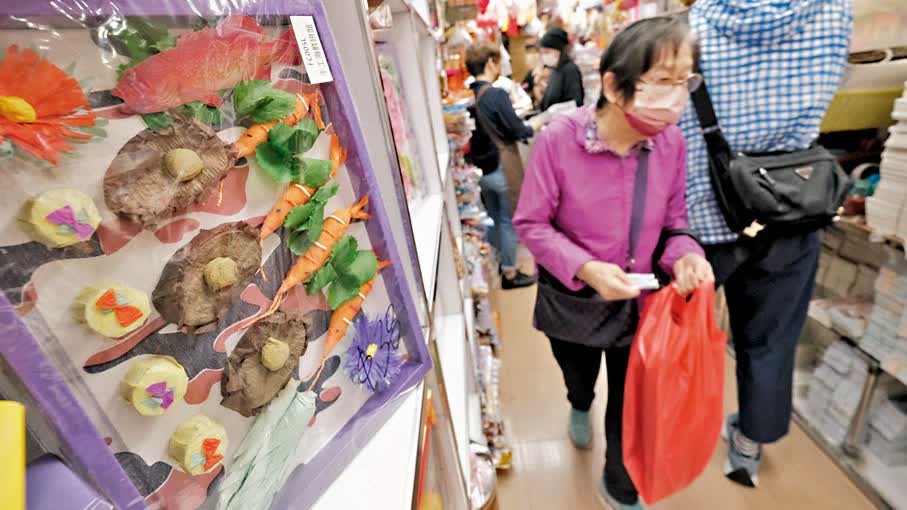 「俊城行」店主杜先生指,已在西營盤經營店舖40多年,感覺今年特別多人過來買祭品。至於今年市道,杜先生表示,因為進貨價變化不大,故售價亦與往年相若,「復常通關之後,跨境運輸業恢復了,內地行業也有競爭,給我們的來貨價也沒有偏貴。」