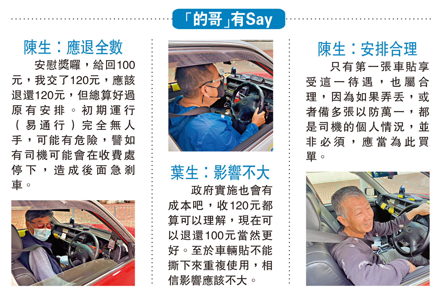 至於方便商用車計算租車司機隧道費分賬的「司機卡」,羅淑佩表示,回應的士及小巴訴求,推出新安排,商用車司機當退回第一張「司機卡」時,可獲發還100元按金。汽車交通運輸業總工會會務主任何志強表示歡迎,認為新安排合理。