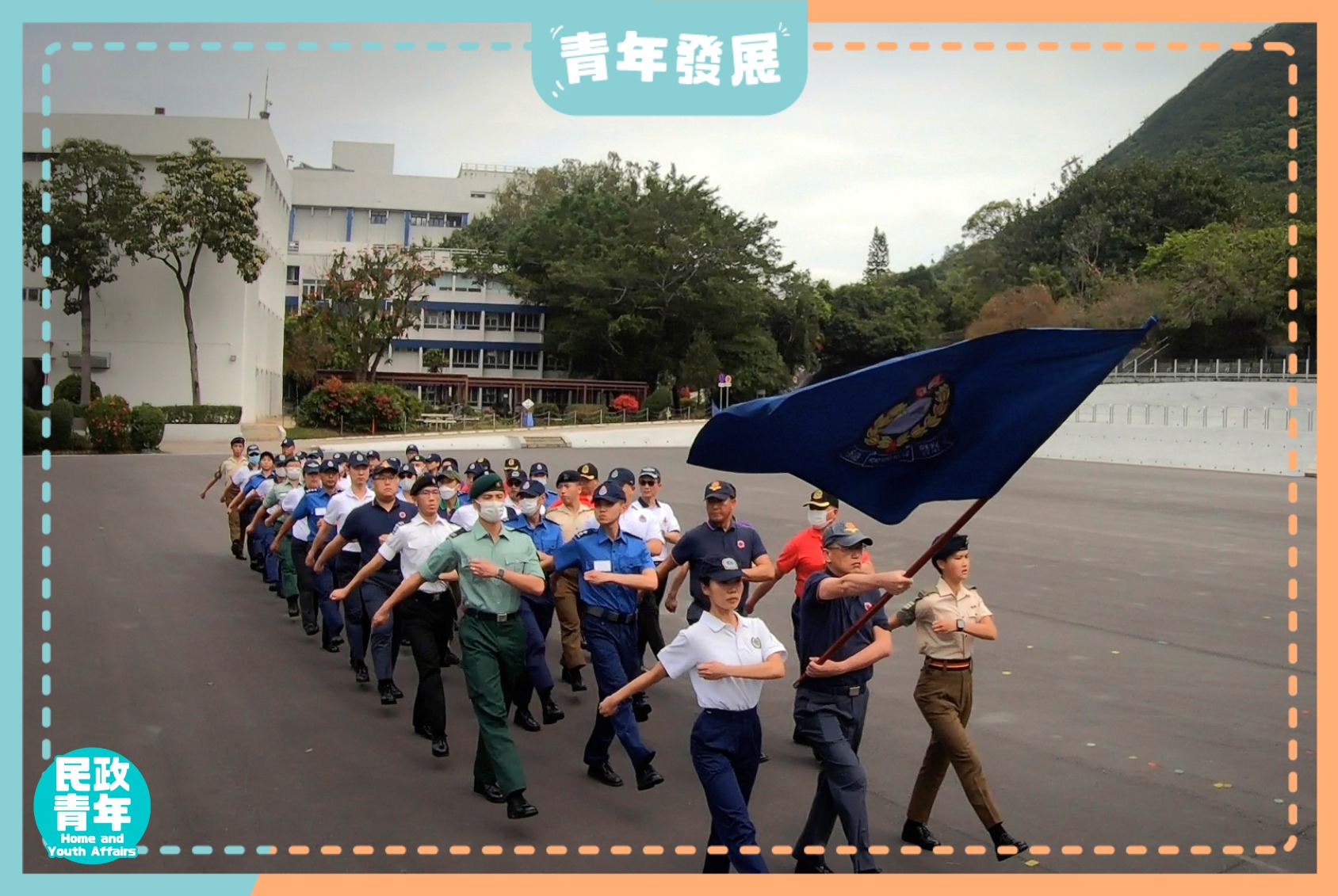 研習班為期6天,分基礎、進階、專題3個階段。內容包括基本動作,隊列流程,升降旗禮及程序,與及相關教學技巧。參與的56名學員是來自14個青少年制服團體的導師,包括少年警訊領袖團、民眾安全服務隊、醫療輔助隊、香港少年領袖團、香港升旗隊總會、香港交通安全隊、香港青少年軍總會等。