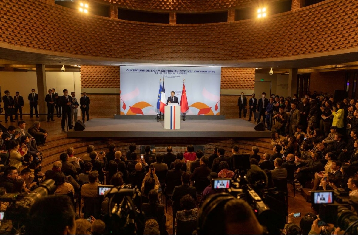 馬克龍為開幕式揭幕並在致辭中表示,2024年兩國將迎來建交60周年的重要時刻,今明兩年,雙方將陸續舉辦眾多精彩的文化交流活動,其中包括凡爾賽宮和故宮將共同組織展覽。他表示,法方有充分意願,在恢復此前受疫情影響的人文交流基礎上,創造更多新的合作項目,內容涵蓋舞蹈、文學、電影、音樂以及沉浸式的數字創作等領域,以不斷增進兩國人民間的友誼。