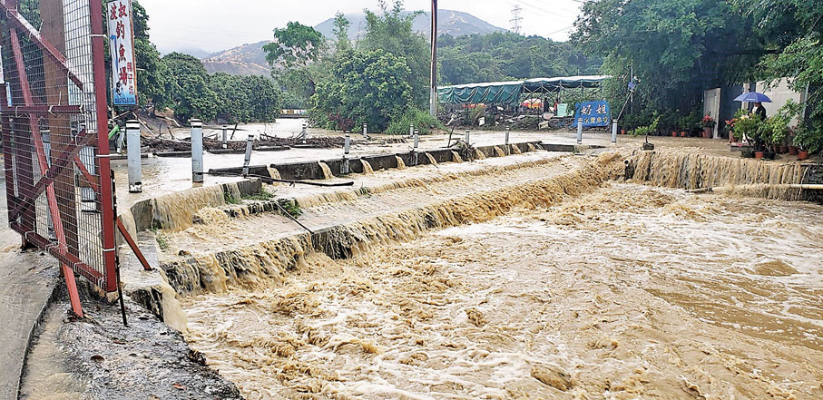 波叔慨嘆,即使並非颳起颱風,只要雨雲落正上下白泥,已足以引起山洪暴發。最令他印象深刻的是2015年8月一場大雨,令他4萬呎的魚塘付諸東流,「塘裏九成魚被洪水沖走晒,包括大批白鱔及數百條龍躉,損失140萬元。年前超強颱風山竹及天鴿襲港,我驚到有得震無得瞓。」