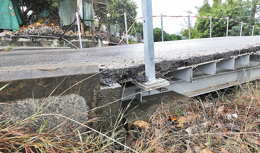 就新橋扶手柄被指只用膠管不夠安全的問題,發言人表示,將新建橋面兩旁金屬欄杆的安裝延後至旱季進行,並暫時設置較輕型的膠欄杆以保障村民出入的安全,會進一步與村民進行協商,早日完成安裝金屬欄杆。新橋面的建造費用約為100萬元。