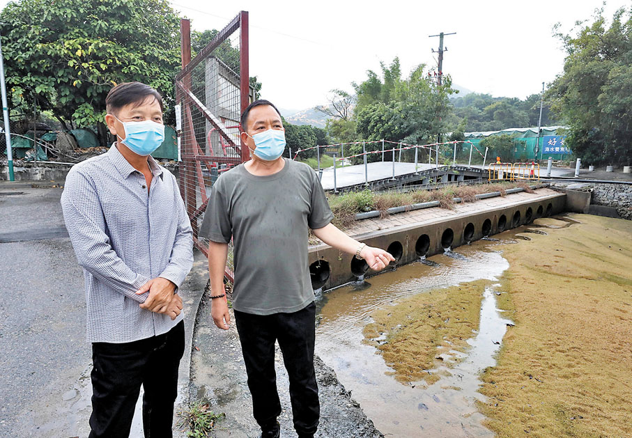 多名資深工程師與香港文匯報記者早前到現場視察。專家指出,鴨仔坑的洪水本可以一直往下游流走,惟因下游地勢高低不平,猛水來到時只會在12個直徑0.6米的圓形排水渠口堵塞,令洪水無法向下流走,水位升高,就會形成水浸現象。