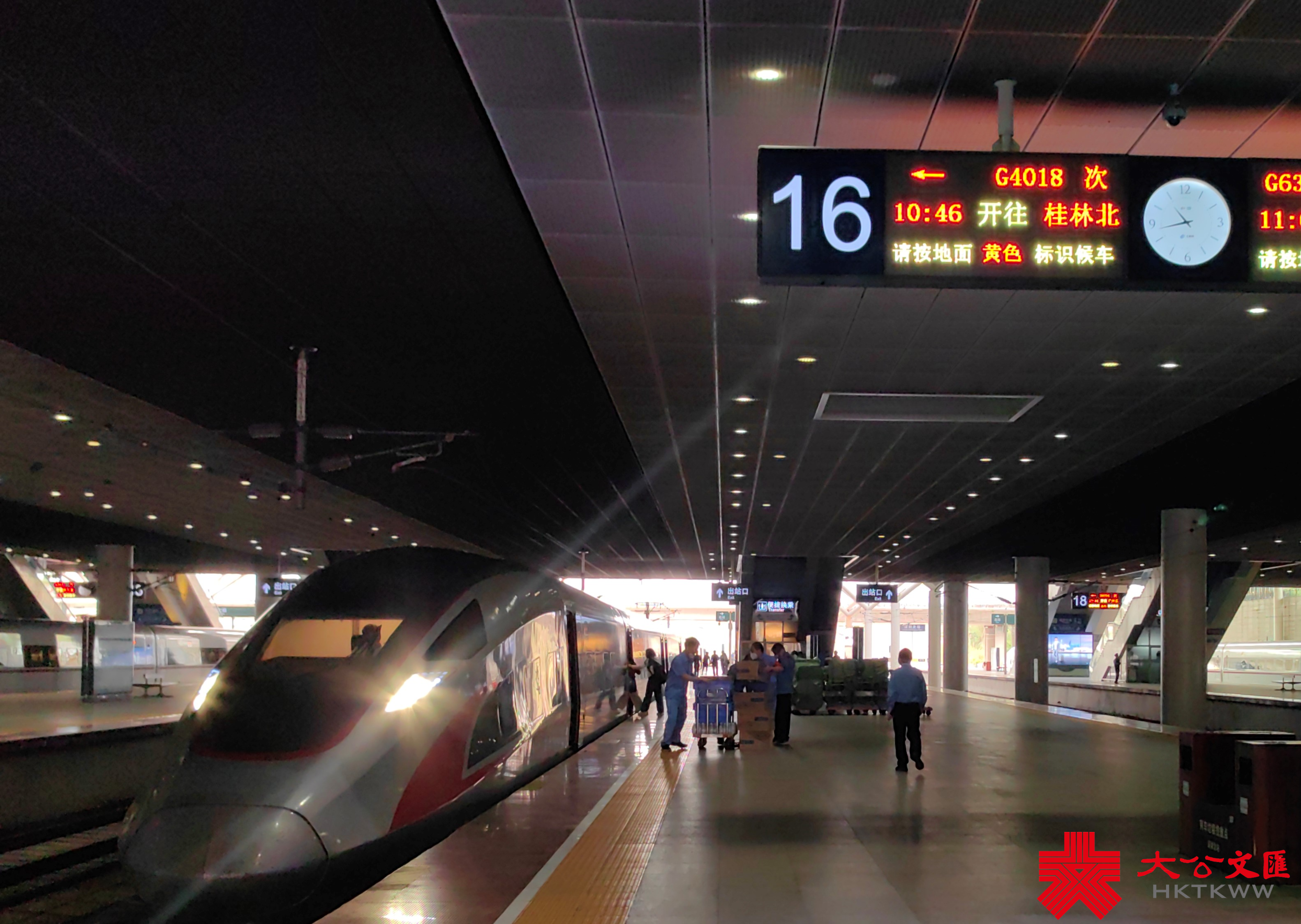 (大公文匯網 記者 郭若溪)「桂林,我們來了!」4月7日上午10時許,滿載着近600名香港旅客的G4018次旅遊專列從深圳北站駛出,開啟了奔赴「八桂」之地的旅程。這是今年以來,珠三角鐵路首次開行的高鐵動車組旅遊專列,由廣東鐵青文旅公司根據香港復活節假期旅客出遊需求,定製開行的,車上的旅客全部來自香港。港人吳女士說,乘坐高鐵出遊,她可以把更多的時間安排在風景區上,路途的時間縮短了,遊玩的時間更長了,她和幾個朋友都覺得這肯定會是一次難忘的旅程。