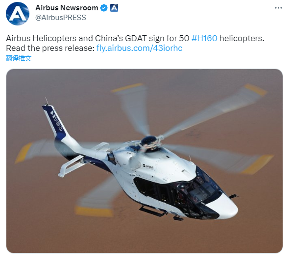 空客直升機公司首席執行官布魯諾·埃文在一份聲明中表示,「我們很榮幸(中國)GDAT決定額外增購50架H160直升機,以加強其(現有的)26架空客直升機機隊。」空客表示,周五的訂單是自其2015年推出H160直升機以來的最大民用訂單。法新社介紹,H160直升機是空客公司推出的一款多用途直升機,可用於民用旅行、軍事任務等多種用途。