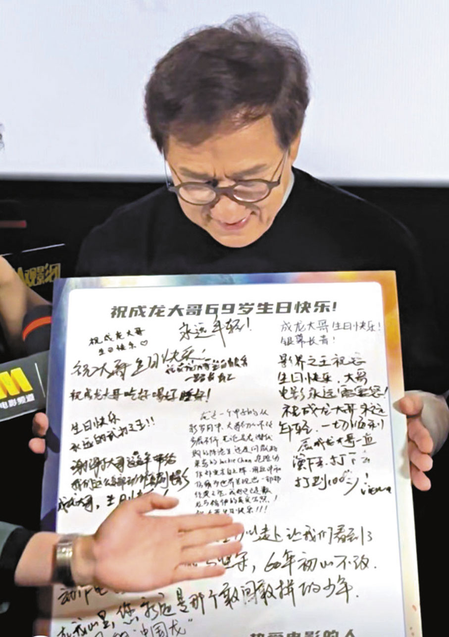 昨天是世界武打巨星成龍的69歲生日,回顧成龍大哥的演藝生涯,大哥的電影陪伴不少華人成長,《A計劃》、《警察故事》、《寶貝計劃》是小時候百看不厭的電影,《紅番區》的一跳帶着大哥走向世界,也開啟了中國內地的賀歲片時代。《尖峰時刻》讓世界再次看到中華武術的魅力。成龍69歲生日之際,他的新片《龍馬精神》也於同日正式上映,首映禮的觀眾還一起寫了賀卡送給成龍,成龍見到卡上密密麻麻的話語相當感動。