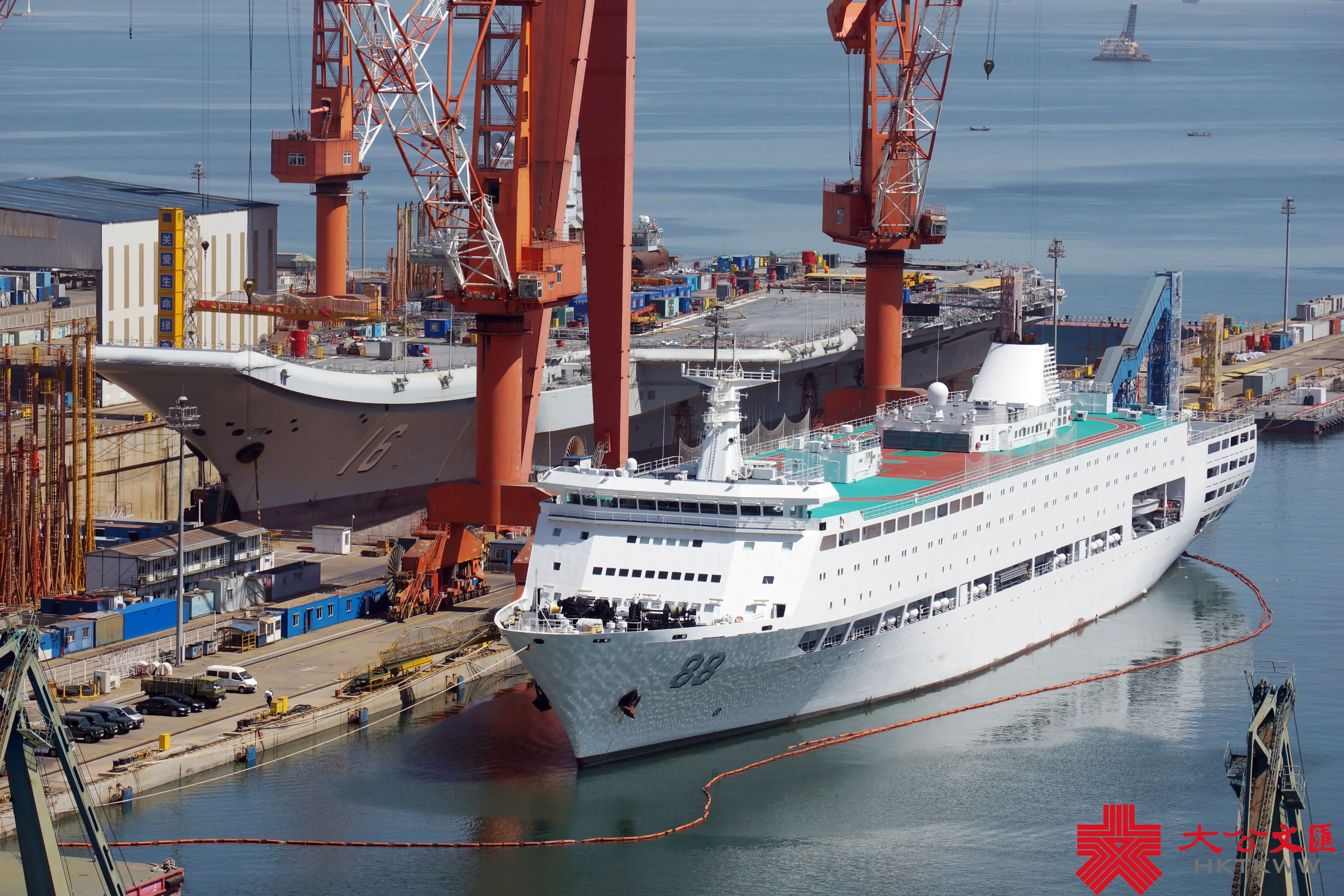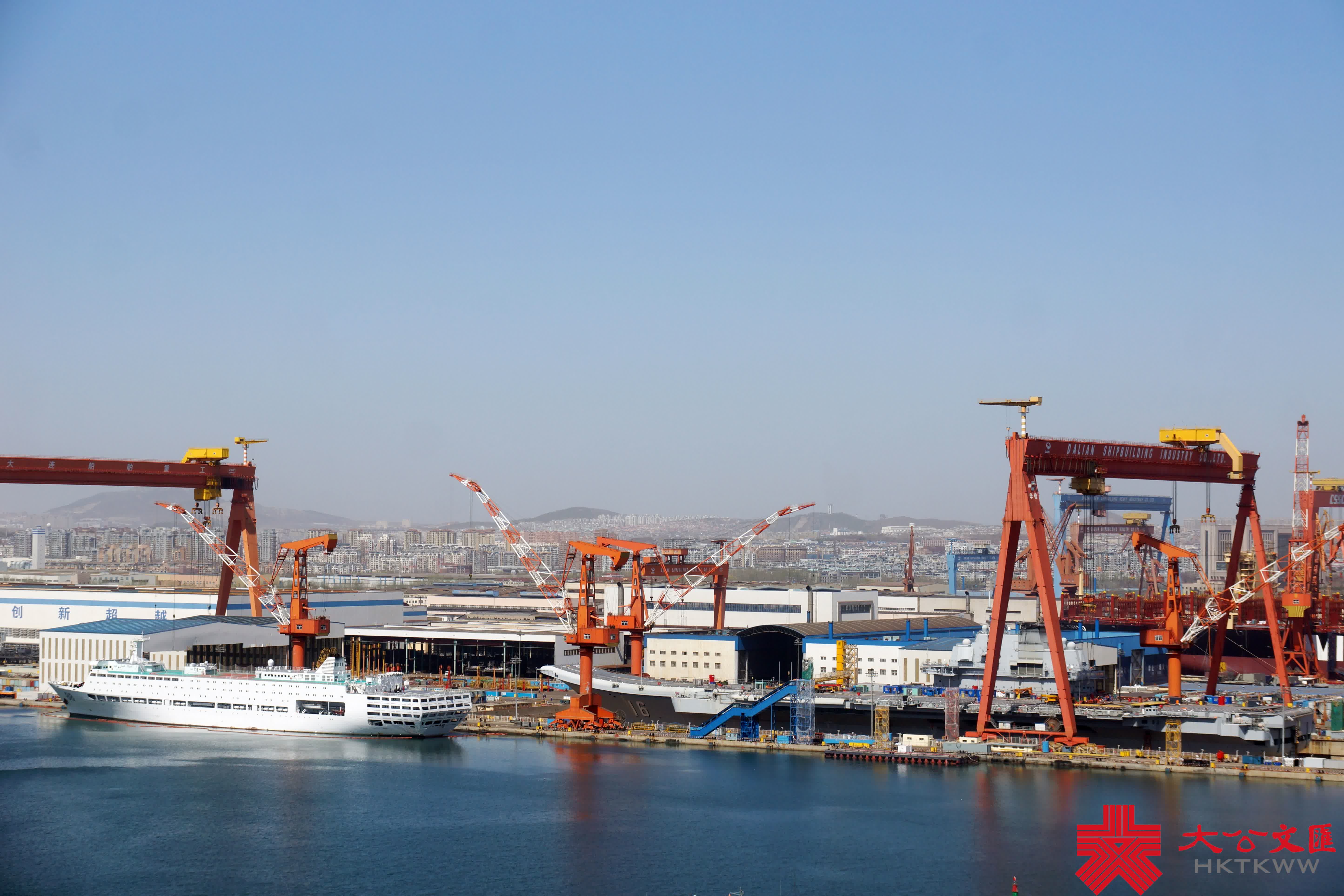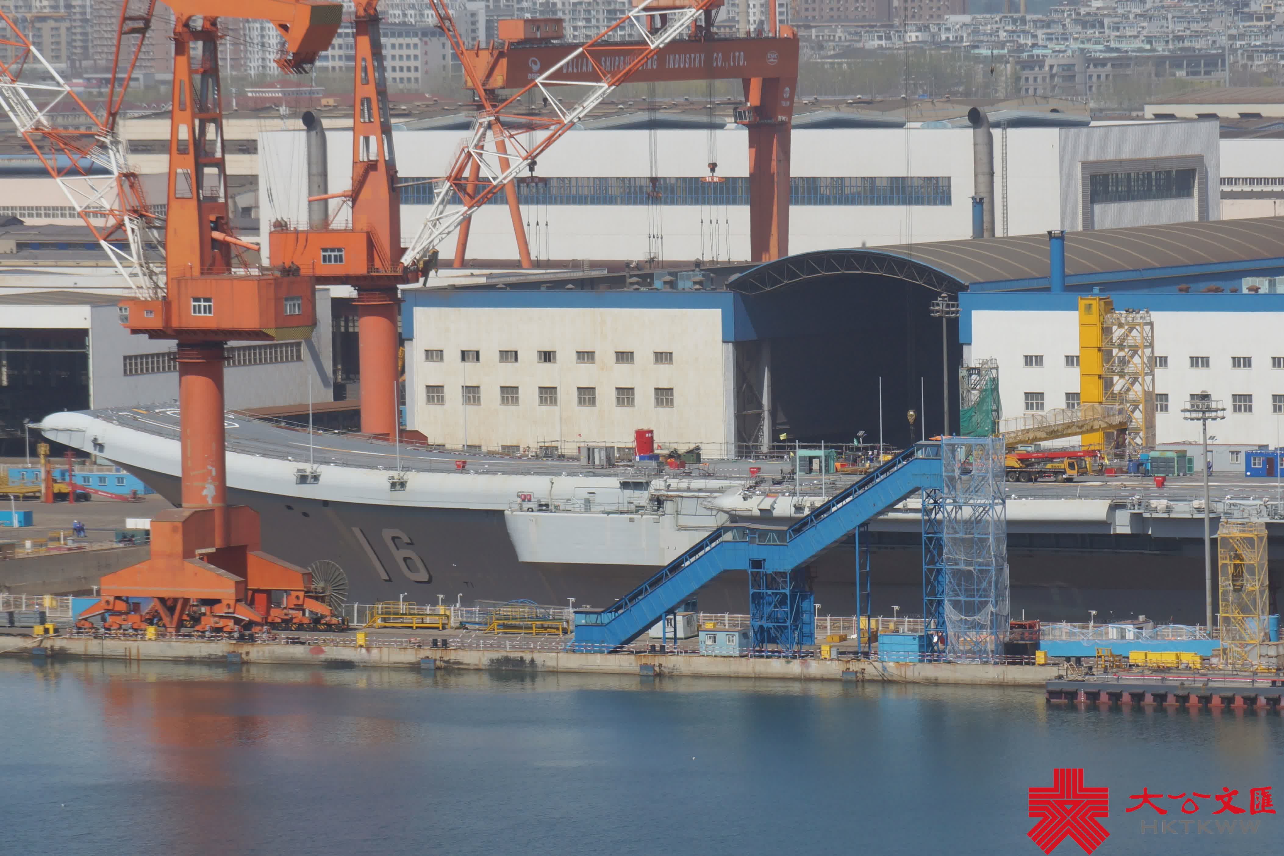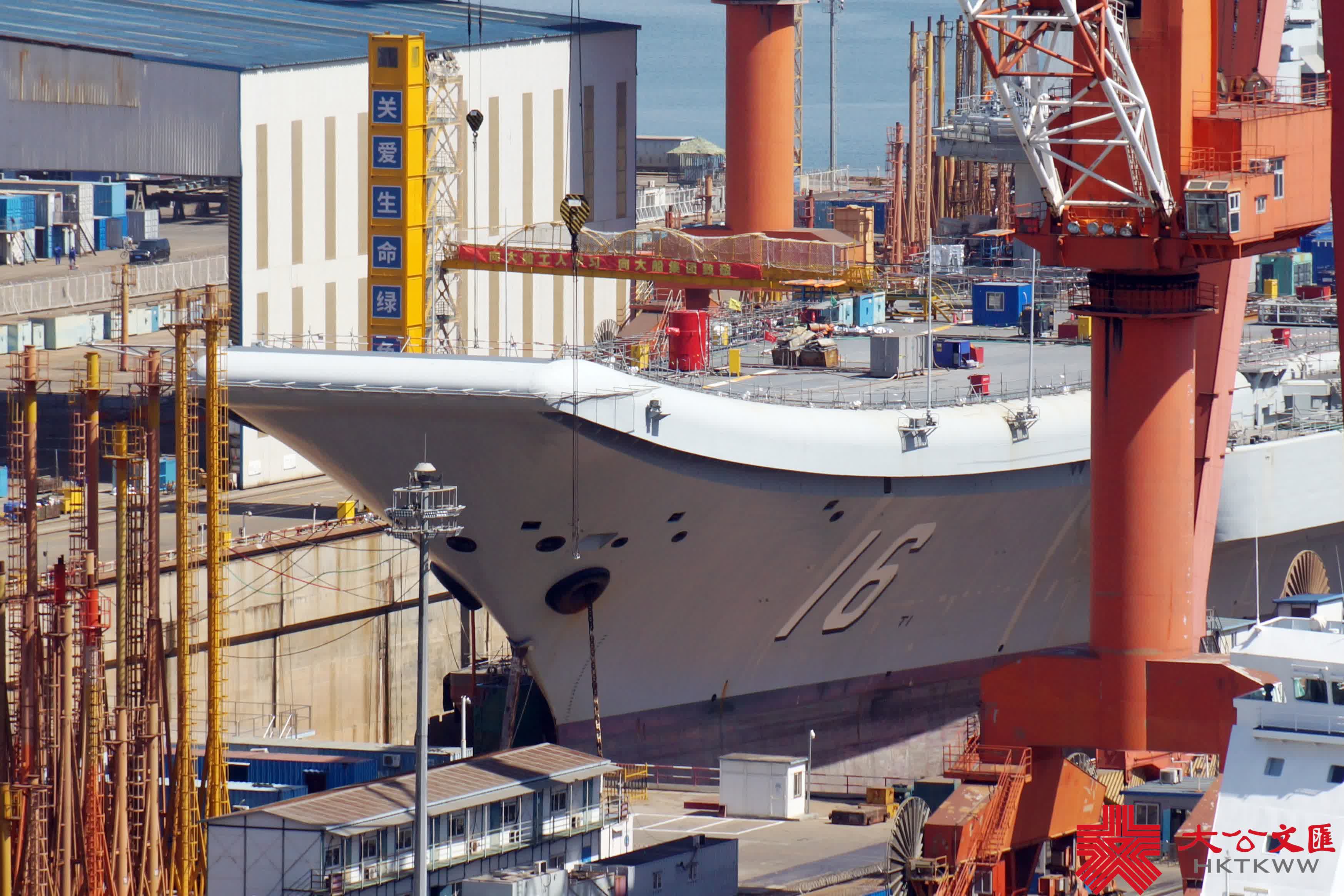 (大公文匯網記者 宋偉)在4·23海軍節即將來臨之際,中國首艘航母遼寧艦返廠維護也迎來施工高峰期。今年2月28日,遼寧艦按計劃返回大連造船廠維護,並於3月底入船塢,施工至今已月餘。目前,航母甲板密布重型機械及設備艙箱,阻攔索及周邊正在展開維護作業,甲板標示線亦被打磨清除,料將重鋪塗層。