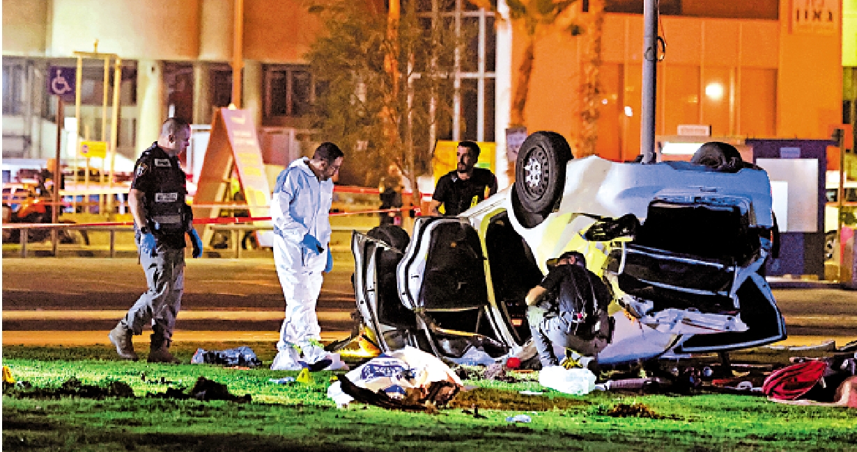 7日,疑犯駕車行駛在特拉維夫一處遊客集中的海灘附近時,突然偏離道路,邊開槍邊駕車衝向人行道。警方到達現場後,發現幾名受傷遊客及一輛翻倒在公園草地上的白色汽車,疑犯試圖拔槍與警方對峙,但被警方擊斃。兇手是以色列中部城市卡西姆的45歲居民賈比爾,正盤問他的家人。一名以色列安全部門的消息人士稱,賈比爾是阿拉伯裔以色列人。