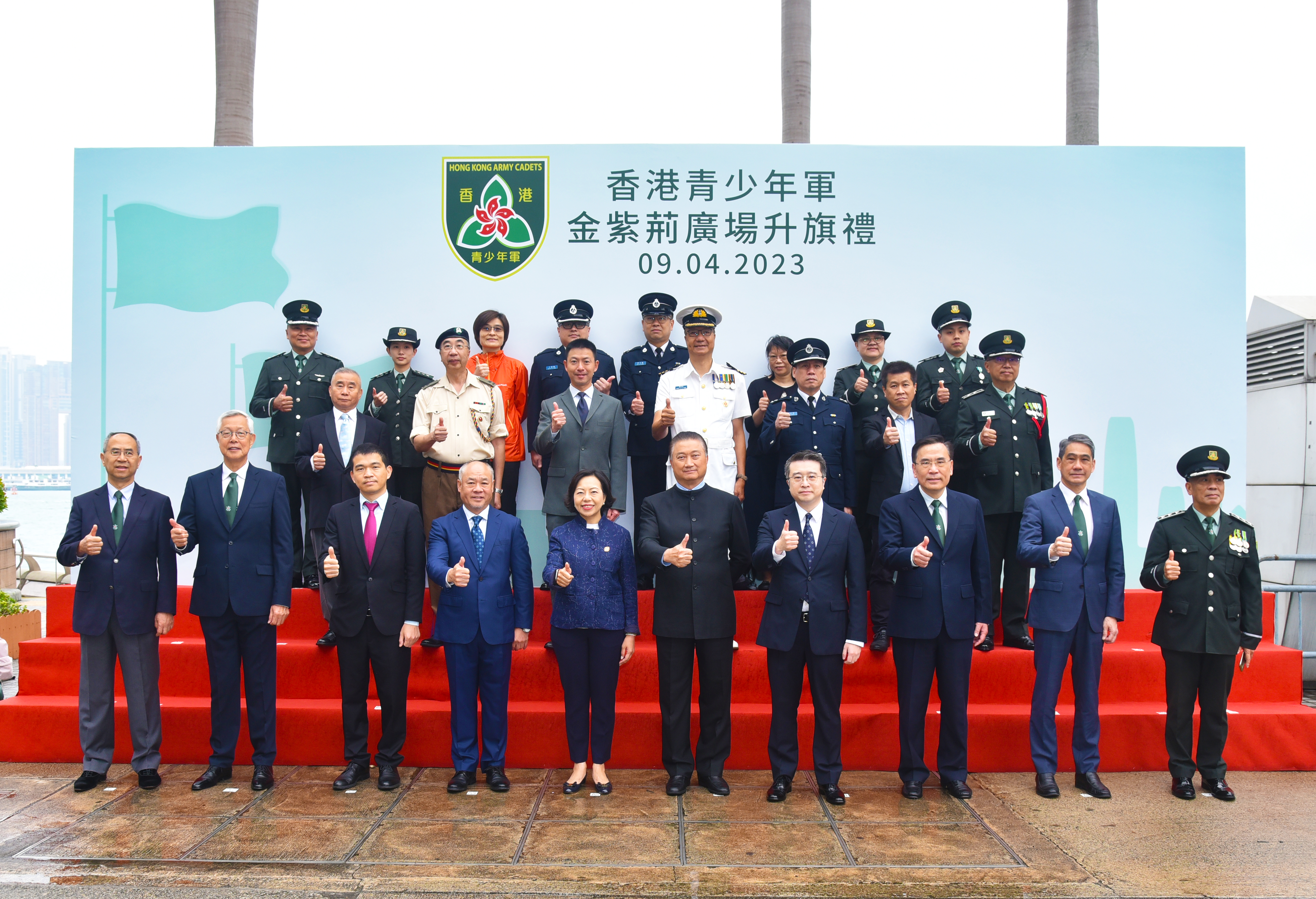 是次升旗儀式獲民政及青年事務局局長麥美娟蒞臨觀禮,其他主要嘉賓包括香港青少年軍總會主席陳振彬、中聯辦青年工作部四級調研員陳觀興,以及香港青少年軍總會的榮譽會長李寧和蔡志堅。