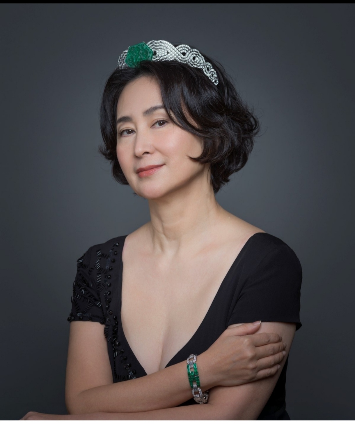 至於何超瓊的私人珍藏就是品牌於2012年製作的鉑金、鑽石及泰姬陵祖母綠冠冕(可拆分為胸針),這頂皇冠鑲嵌了赫赫有名的泰姬陵祖母綠,重達141.13卡,是難度最大的六角形切割,上面還雕刻了菊花、蓮花和枝葉紋樣,因與泰姬陵建築裝飾相似,所以用泰姬陵祖母綠命名。據知2019年佳士得曾在一場拍賣會上以逾1217萬人民幣的高價賣出,但當時未有公開買家的姓名,原來買家是何超瓊。