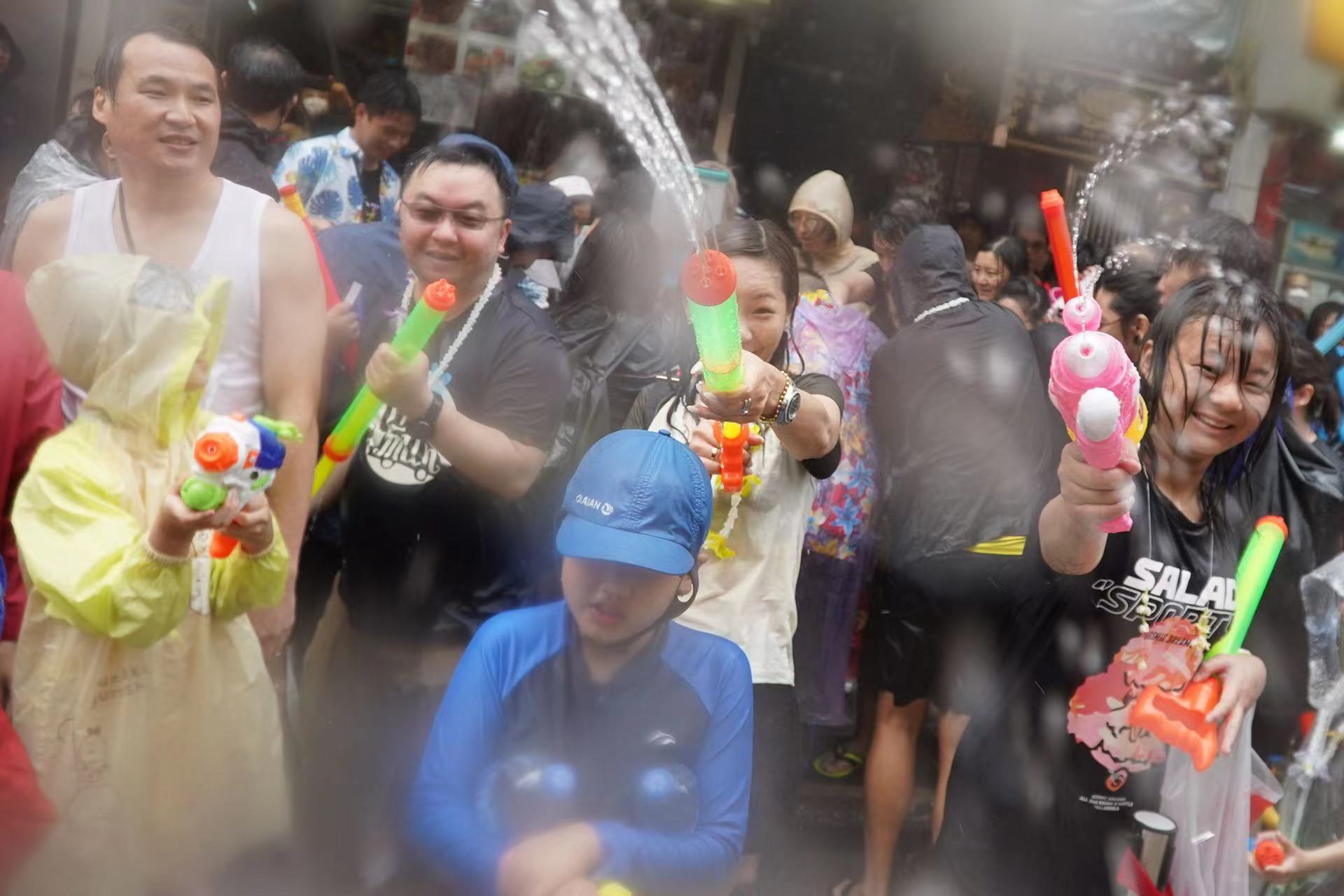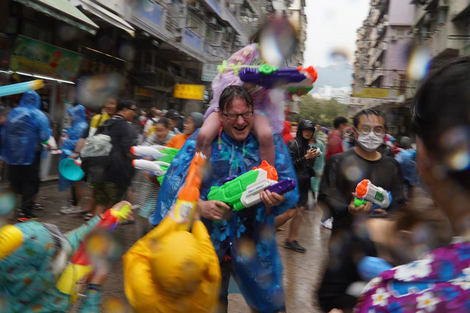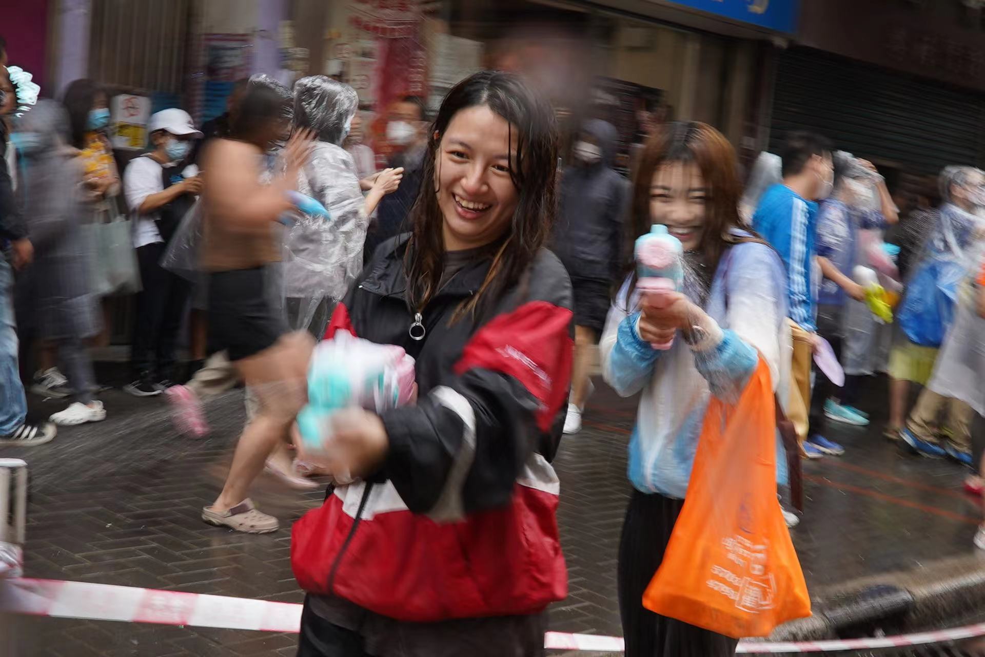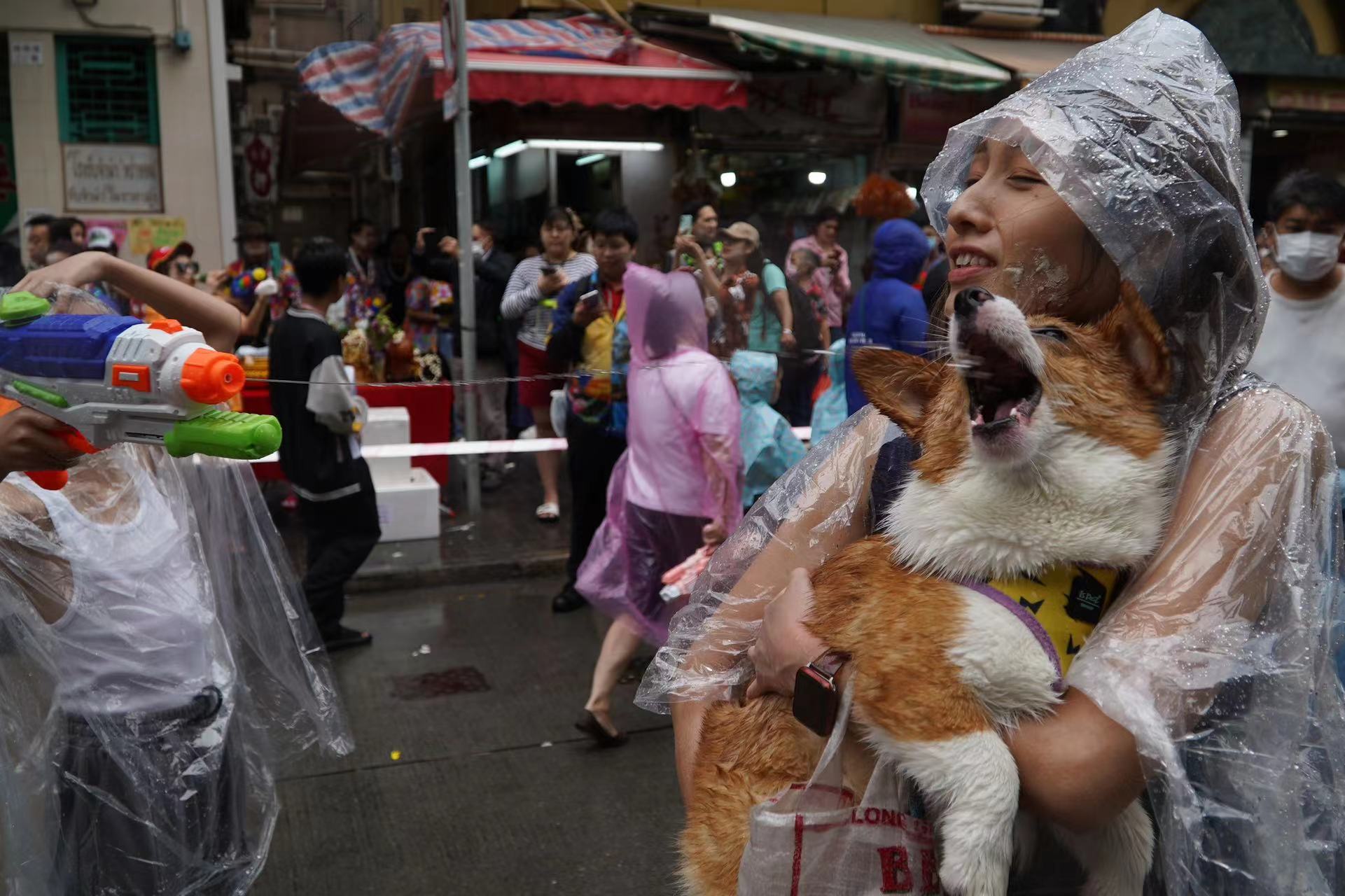大公文匯全媒體報道,因疫情停辦逾3年的九龍城潑水節復辦,主辦單位今日(9日)在賈炳達道公園舉辦「龍城HAPPY潑水嘉年華」,設有20多個攤位,提供泰式按摩、泰菜、泰拳表演、手繪等20多項體驗活動予市民參與。另外,熱鬧好玩的潑水活動就在城南道舉行,數百市民參與,不少人手持水槍展開激烈的潑水大戰。不少市民身穿泰國風花襯衫,面上塗抹白粉,盡情體驗地道泰式文化。小朋友更是玩得不亦樂乎,興奮地互相潑水,場面歡樂。