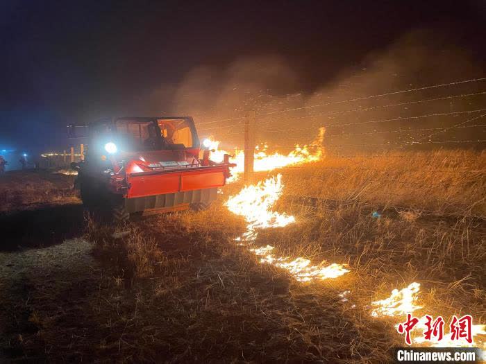 內蒙古森林消防總隊錫林郭勒盟支隊快速出擊趕赴火場,布控堵截入境草原火災。經火場聯合指揮部會商研判,決定利用草原滅火戰車採取「遞進超越、追殲火頭」的戰法對入境火實施有效堵截。