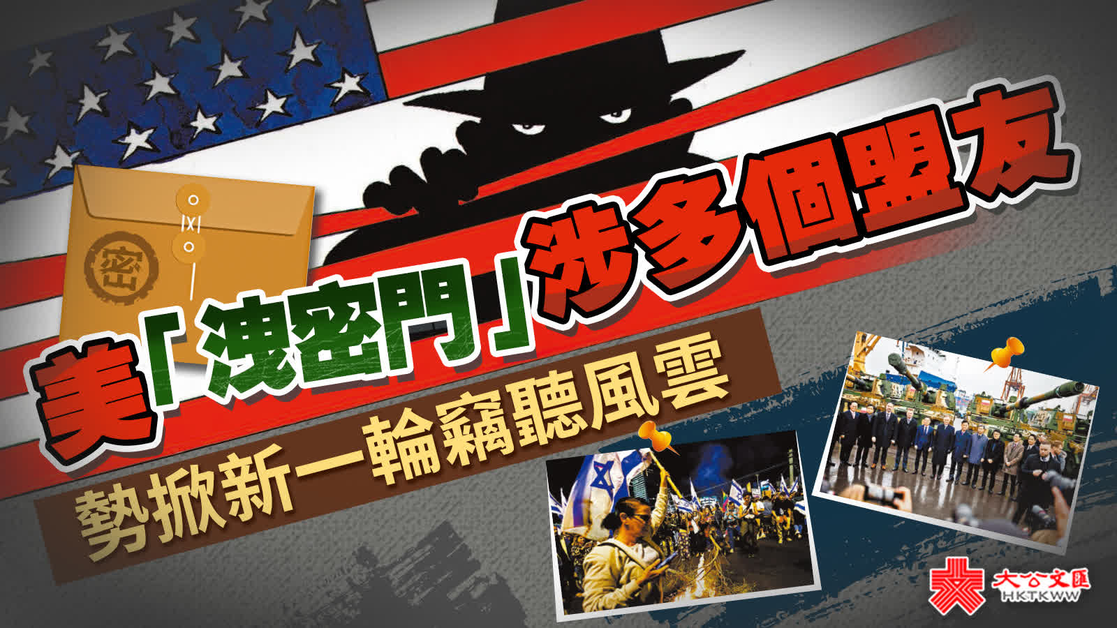 香港文匯報報道,美國軍事機密情報疑似出現數十年來最嚴重外洩,多間美媒前日繼續曝光稱,美國監視對象不僅俄烏衝突雙方,更包括歐亞多個盟國。報道指出,美方疑似透過竊聽或截取通訊紀錄等手段,刺探韓國、土耳其、以色列和英國等多國內部事務情報。分析指雖然美國監視盟國早已是「公開的秘密」,但這一行動被曝光勢必引起盟友不滿,打擊美國與關鍵夥伴的關係。